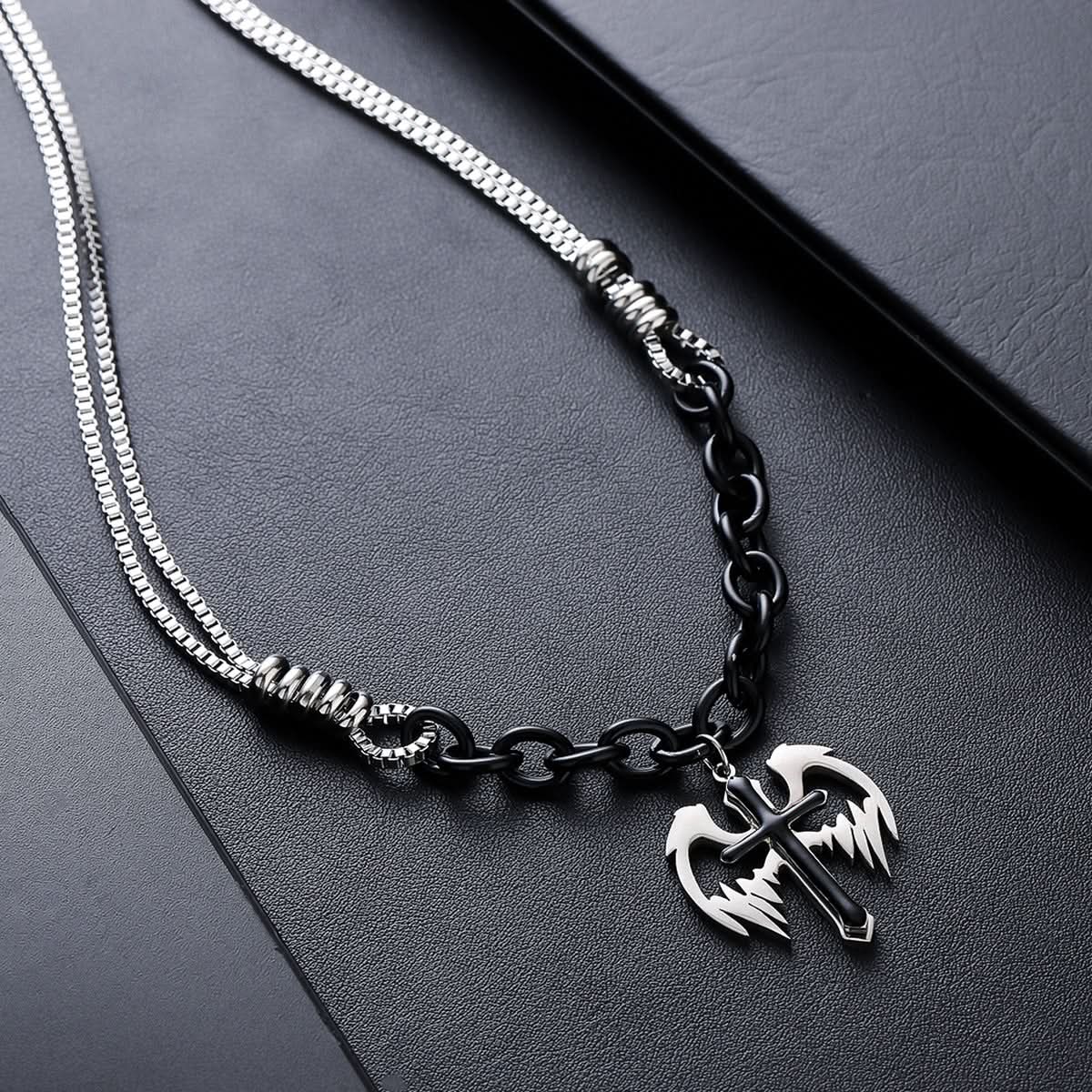 Elevate your streetwear look with this men’s feather cross double-layer necklace, a bold statement piece designed for those who appreciate hip-hop and high-end fashion. Made from durable, fade-resistant titanium steel, this multi-layered chain features a geometric feather cross pendant, symbolizing strength and individuality.