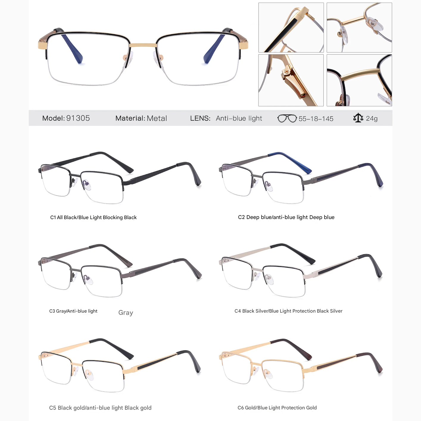 Designed for professionals and modern thinkers, these Men’s Half-Frame Anti-Blue Light Glasses are part of our International Collection, combining sleek business aesthetics with practical eye protection. Crafted from durable metal and styled in a slim, boxy half-frame, they offer a lightweight fit that’s perfect for all-day wear.