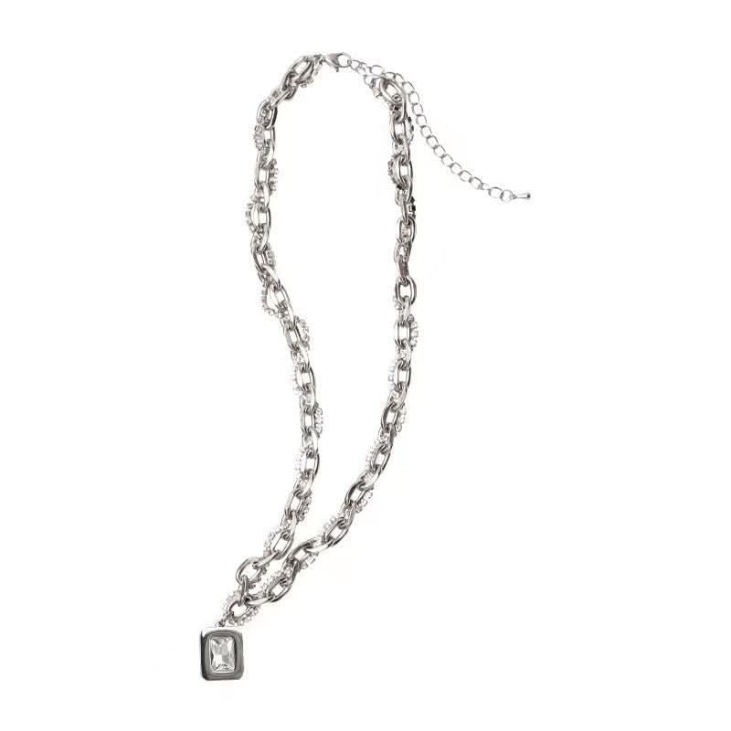The double-layer overlapping design adds depth and style, while the geometric square zircon pendant brings a touch of luxury. With a 41cm-50cm adjustable chain, it sits perfectly at the collarbone, making it ideal for layering or wearing solo. The cross-chain style enhances its urban appeal, making it a go-to accessory for hip-hop, streetwear, and contemporary fashion lovers.
