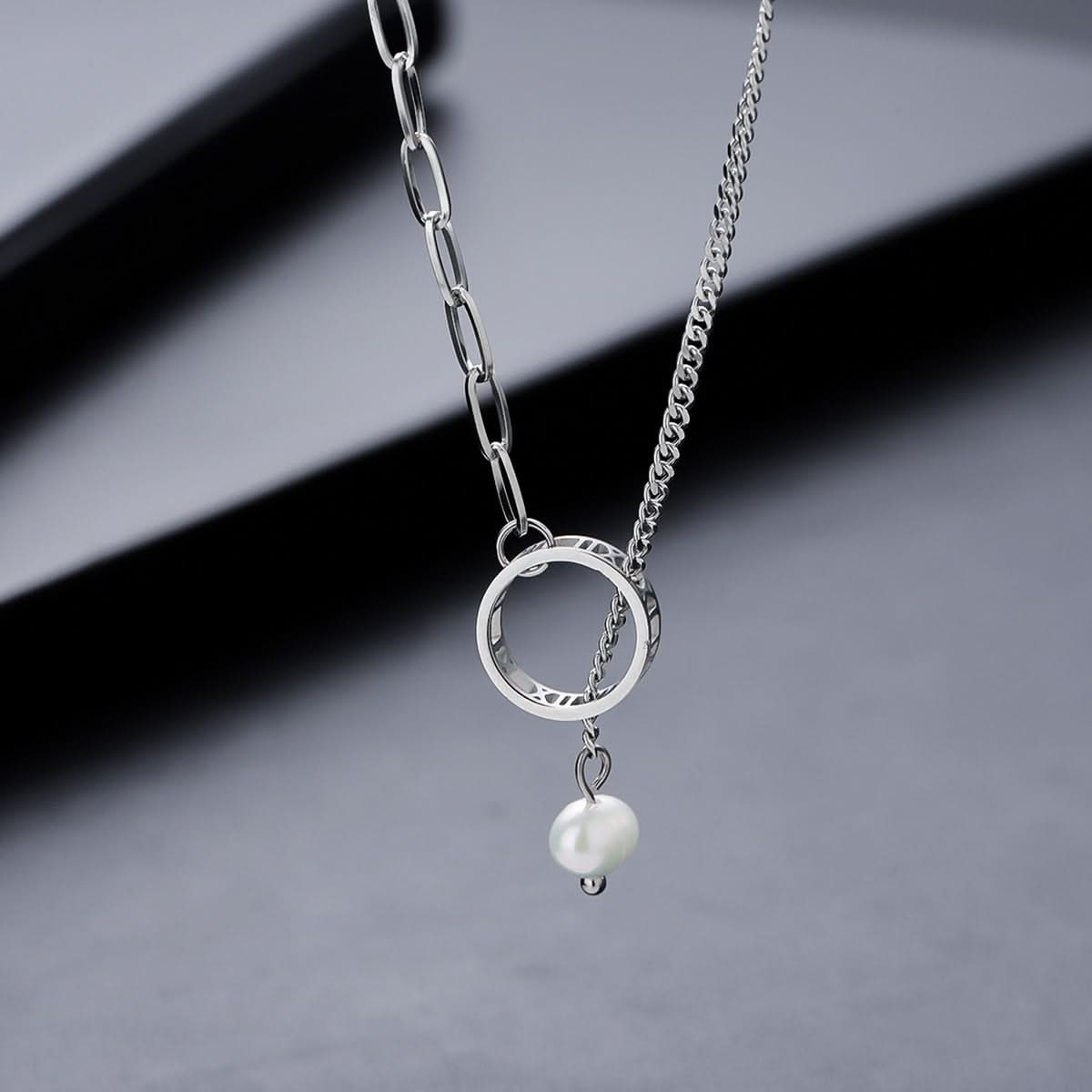 Elevate your style with this men’s pearl hoop necklace, a perfect blend of modern minimalism and timeless elegance. Designed for versatility, this piece features a durable titanium steel chain paired with a sleek silver-tone geometric pendant for a refined yet edgy look. The non-fading finish ensures long-lasting wear, making it an ideal choice for everyday outfits or special occasions. With a comfortable 41-50cm length, it sits perfectly on the collarbone, enhancing any casual or formal ensemble. Whether you're into contemporary street fashion or prefer a subtle, sophisticated touch, this necklace offers the perfect balance. A great gift for men who appreciate high-end simplicity and light luxury accessories.