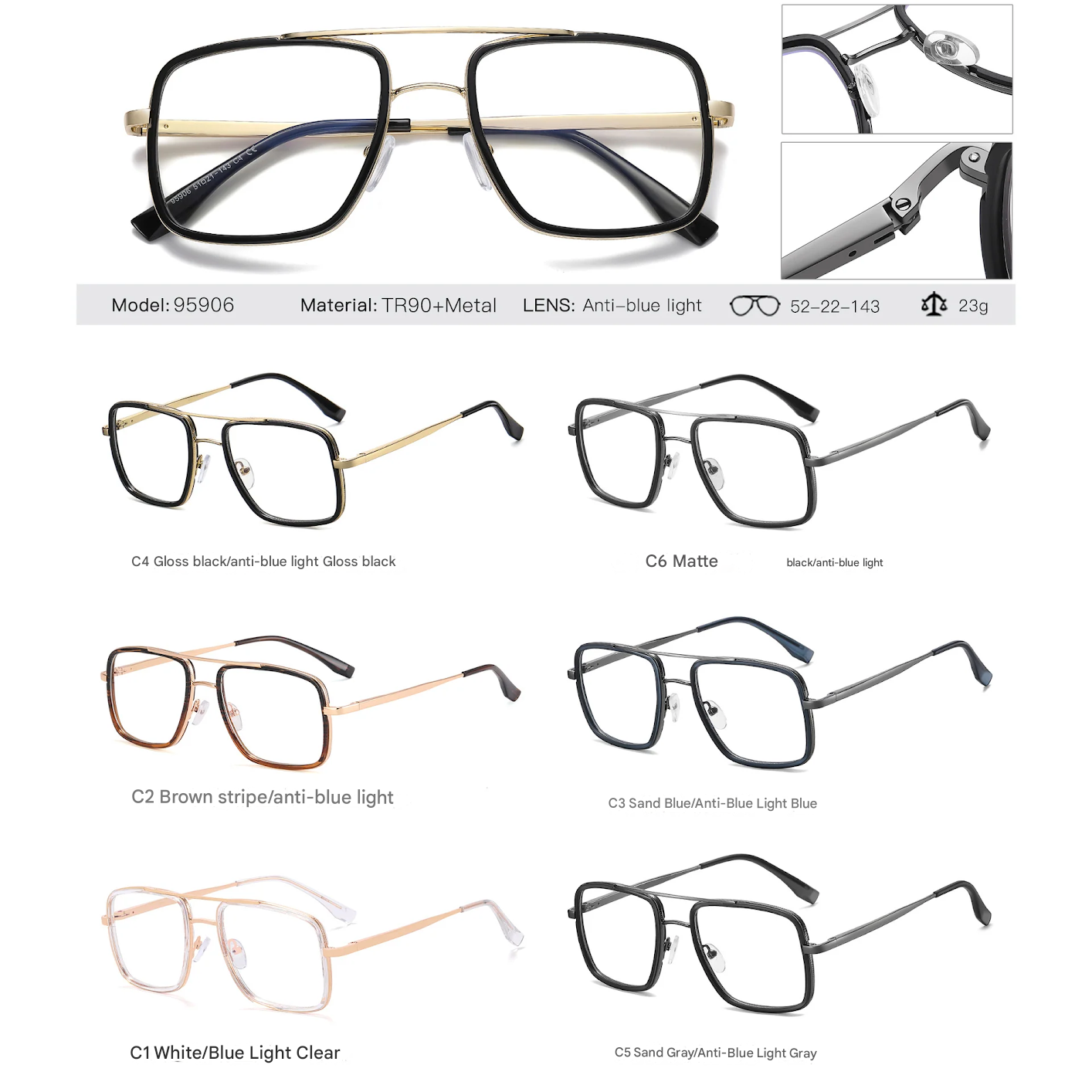 Frame material: TR90+Metal