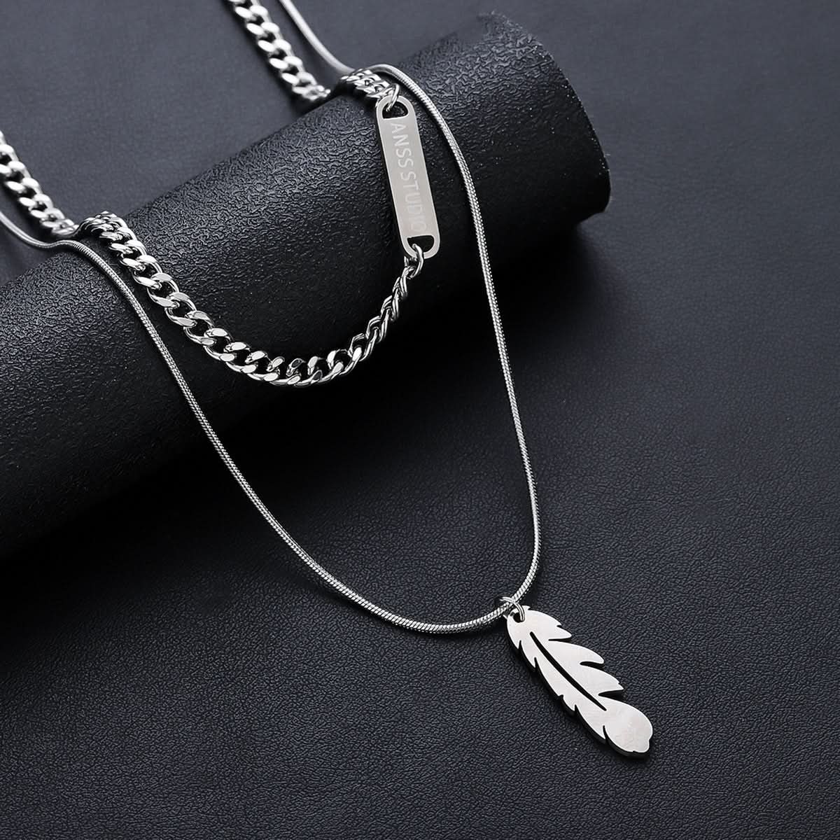 Elevate your style with this men’s double-layer feather pendant necklace, designed for those who appreciate bold, statement-making accessories. Crafted from high-quality titanium steel, this piece offers exceptional durability, a non-fading finish, and a lightweight feel for everyday wear. The layered Cuban chain design adds depth and texture, while the intricately detailed feather pendant symbolizes freedom and individuality. With a versatile 51-60cm length, this necklace effortlessly enhances both casual and streetwear styles. Whether worn alone or layered with other chains, it’s a must-have accessory for those who love modern, fashion-forward jewelry. A perfect gift for trendsetters, this stylish and timeless piece makes a strong impression wherever you go.