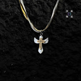 Elevate your style with this two-tone cross pendant necklace for men, designed for those who appreciate bold, high-end fashion with a rugged edge. Crafted from premium titanium steel, this durable, fade-resistant necklace ensures long-lasting wear while maintaining its sleek, polished look.