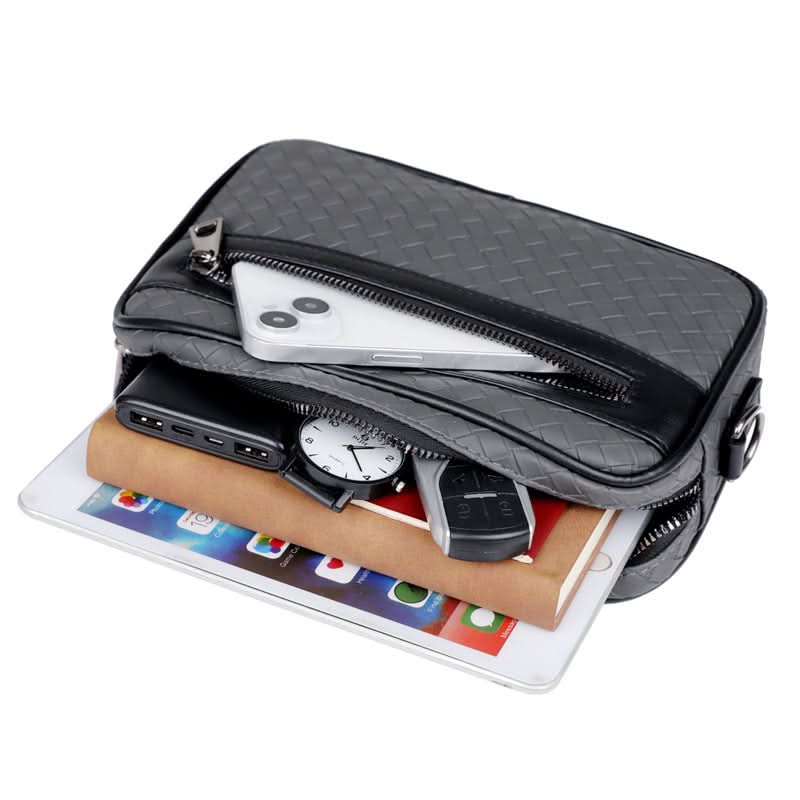 Turn heads with this Men’s Woven PU Leather Crossbody Bag, a perfect blend of street fashion and everyday function. Designed with a stylish plaid weave pattern and available in grey, black, or green, this breathable PU leather bag adds a bold, urban edge to your look. Whether you're out with friends or on the move around the city, its multifunctional compartments make it easy to carry all your essentials—phone, wallet, keys, and more.