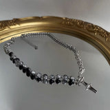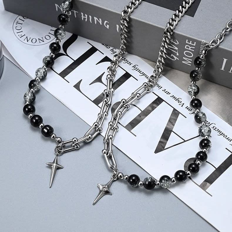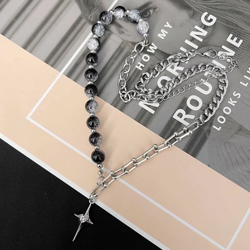 Make a bold statement with this hip-hop-inspired star pendant necklace, featuring a unique blend of black and white ice-cracked pearls for a distinctive, edgy look. Designed with a high-quality titanium steel chain, this trendy clavicle chain offers durability and a stylish cold-tone aesthetic. The geometric star pendant adds a touch of individuality, making it a perfect accessory for streetwear, casual, or urban fashion styles. With an adjustable 41-50cm length, this necklace ensures a comfortable fit for different necklines. Whether worn alone for a sleek, minimalist vibe or layered with other chains for a bold, hip-hop look, this fashion-forward piece is a must-have for those who love unique and trendsetting accessories.
