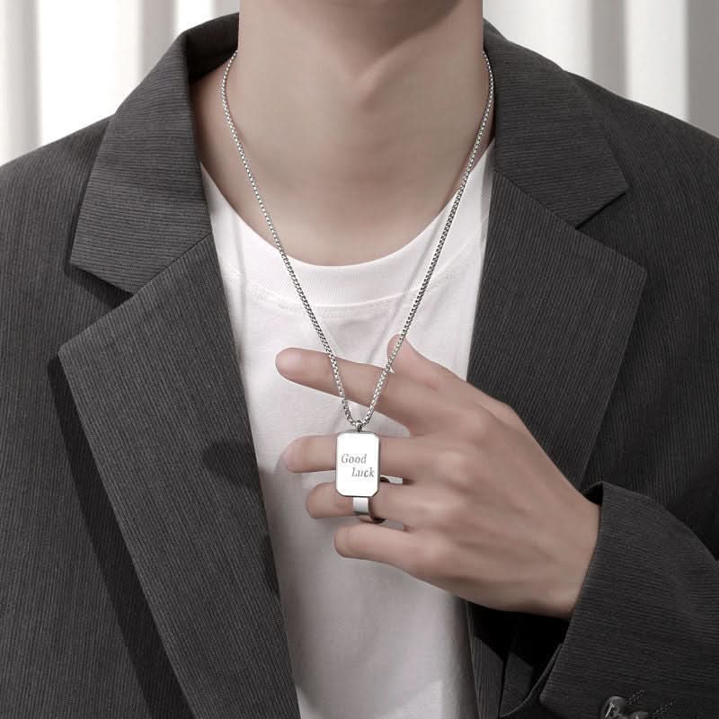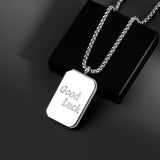 Elevate your style with this men's titanium steel pendant necklace, designed for those who appreciate bold, modern accessories. Featuring a sleek square tag pendant, this hip-hop-inspired piece adds a touch of streetwear edge to any outfit. The lightweight yet durable titanium steel construction ensures long-lasting wear, while the versatile silver-tone finish complements both casual and formal looks. Whether worn solo for a minimalist vibe or layered for a statement effect, this lucky charm necklace is perfect for daily wear, parties, and gifting. A must-have accessory for men who love fashion-forward, all-match jewelry with a unique touch.