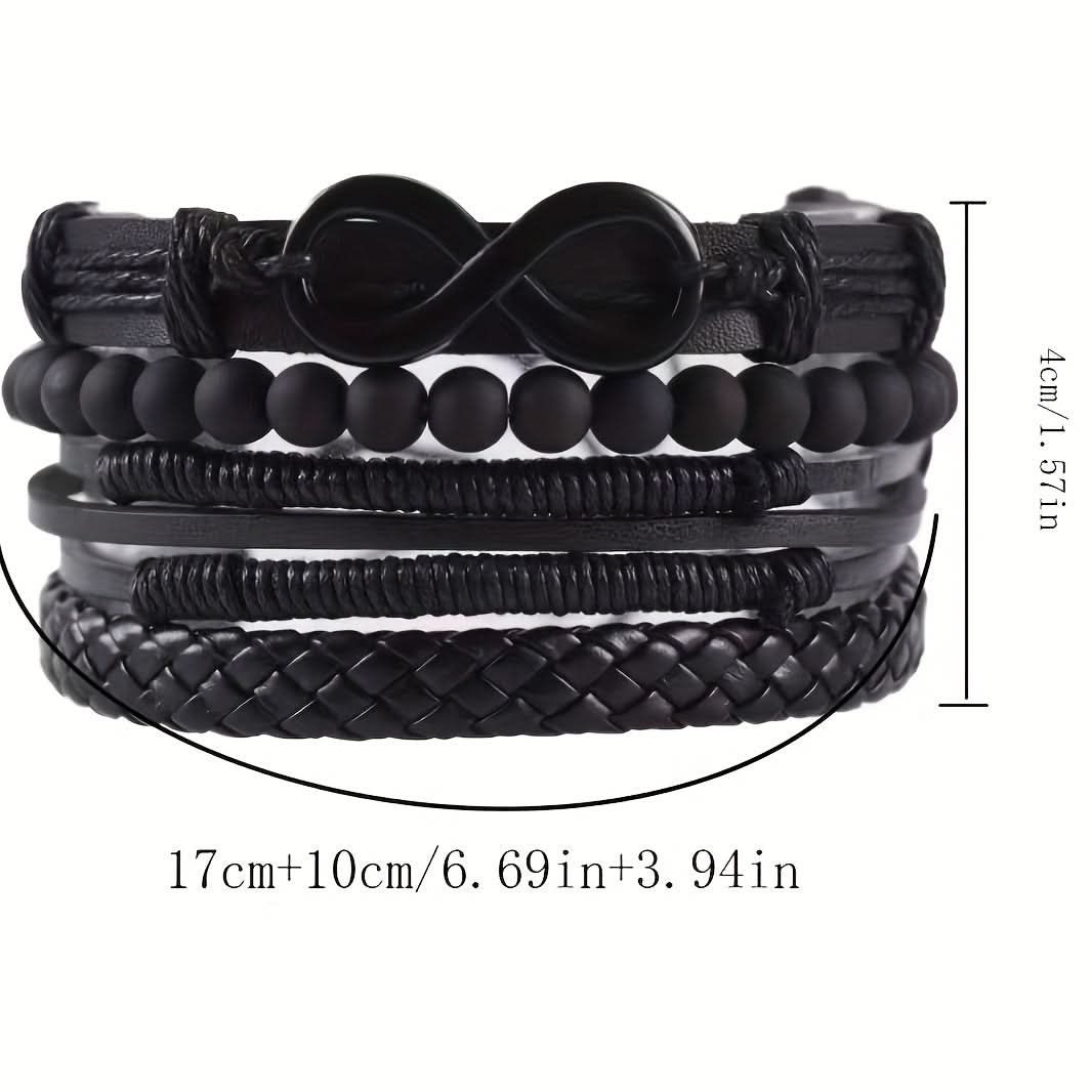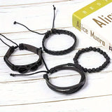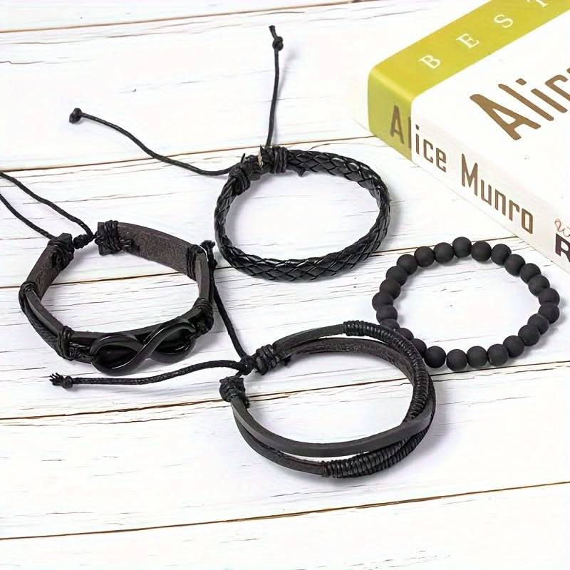 Upgrade your accessory game with this 4-piece Men's Leather Bracelet Set, featuring a striking mix of retro-inspired designs. Crafted from high-quality black leather with intricate weaving details, this set offers both style and durability. The multi-layer wrap design is accented with bold anchor and leaf charms, adding a touch of rugged sophistication to your look.