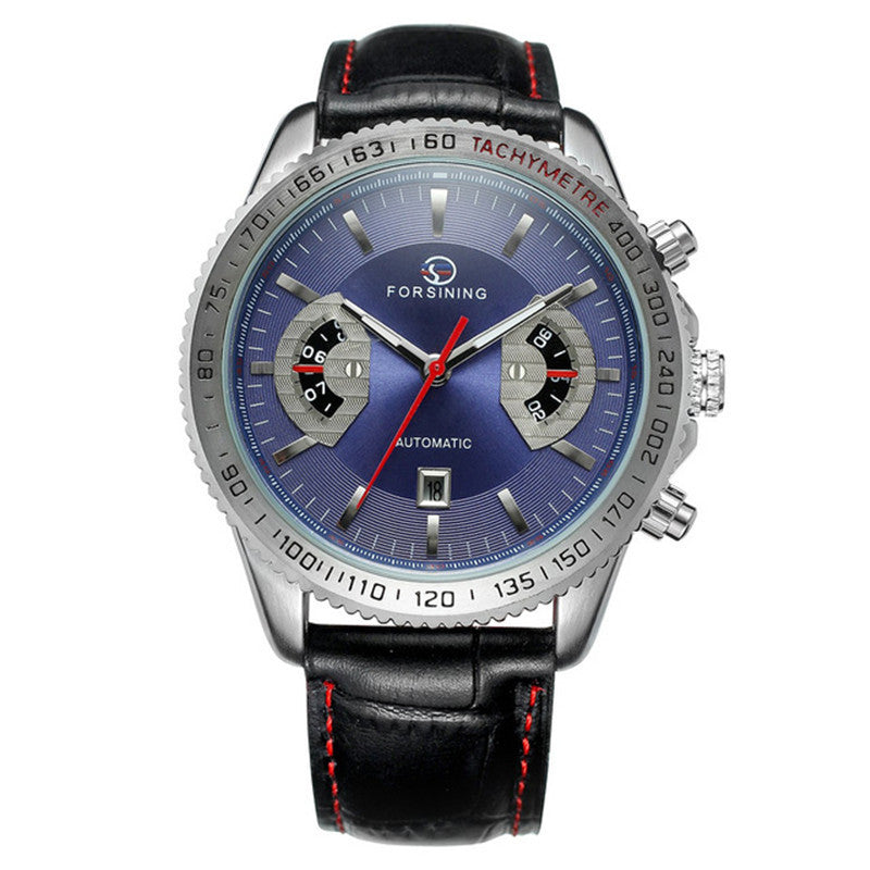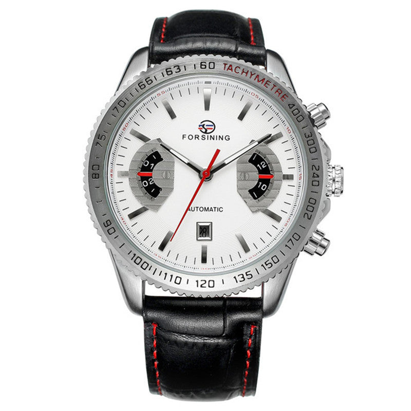 The automatic movement ensures smooth performance without batteries, making it as practical as it is elegant. Available in sleek white, deep blue, or classic black, this round-dial watch is paired with a comfortable leather strap and secure pin buckle for everyday wear.
