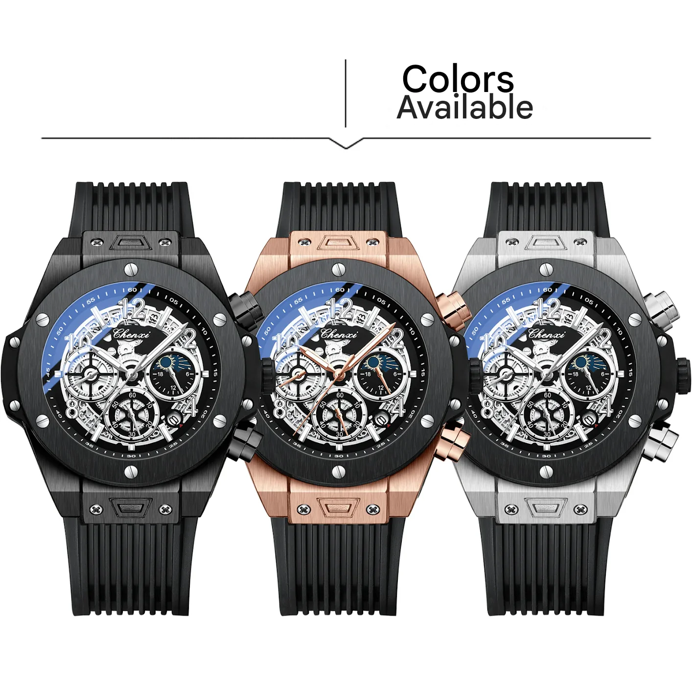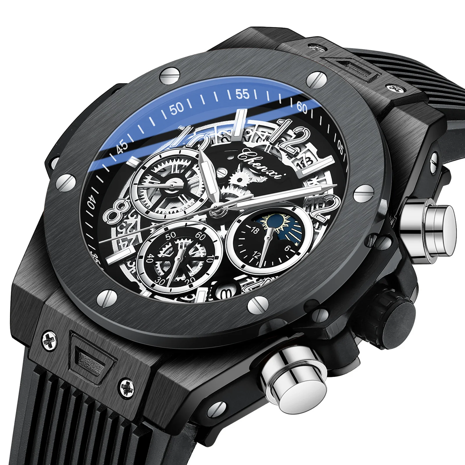 Upgrade your wrist game with this barrel-shaped men's sports watch, designed for both style and performance. Featuring a precise quartz movement, this timepiece includes a luminous display, moon phase function, and a countdown timer for added versatility. The durable stainless steel case, paired with a scratch-resistant mineral glass mirror, ensures long-lasting wear, while the 30M waterproof rating makes it suitable for daily use. A comfortable silicone strap and secure single-fold clasp provide a snug yet stylish fit. Whether you're dressing up for an occasion or keeping it casual, this watch blends sporty elegance with everyday practicality. Available in rose gold, silver, and black to match any look.