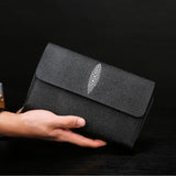 Stay organized and stylish with this men's PU leather business clutch, designed for both business and casual use. Crafted from high-quality PU leather with a soft polyester lining, this sleek clutch features a spacious double-zipper design, providing ample room for your cards, cash, phone, and other essentials. The multi-card slot layout ensures easy access and organization, making it perfect for business meetings, travel, or daily use. The solid color finish with detailed sewing thread accents adds a refined touch to its minimalist design. Available in classic brown and black, this versatile clutch complements any outfit while offering functionality and sophistication. Ideal for business professionals and travelers, this durable and lightweight clutch keeps your essentials secure and within reach.