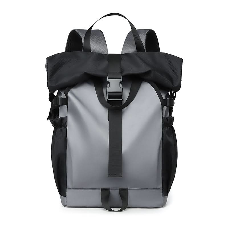 Combine style and functionality with this men's waterproof roll-top backpack, perfect for leisure travel, gym sessions, and everyday use. Crafted from durable Oxford cloth with a sleek, genderless design, this backpack is available in light grey, dark grey, and black to match your versatile lifestyle.