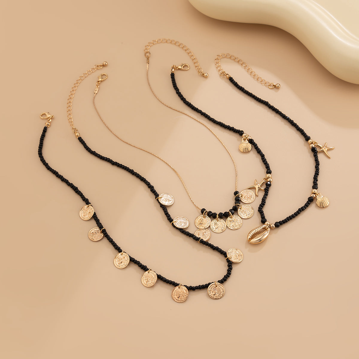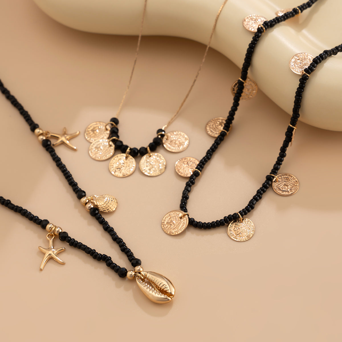 Elevate your look with the Midnight Coast Charm Bead Necklace, a chic accessory that combines elegance with contemporary style. Crafted from durable alloy with resin accents, this necklace features a series of charm beads in a sleek black design, accented with subtle cross and pentagram chains for a modern, fashionable touch. Lightweight and comfortable, it sits gracefully along the clavicle, making it perfect for casual outings, evening events, or commuter-friendly wear. The single-layer charm bead design delivers a sophisticated yet playful statement, adding depth and character to any outfit. Handpicked from Abroad, this necklace brings international fashion trends directly to your collection, blending versatile style with timeless appeal. Ideal for women who love jewelry that balances elegance, modernity, and everyday wearability.