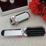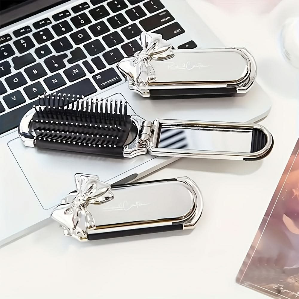 Stay stylish and tangle-free wherever you go with this Mini Folding Hair Brush for Women! Designed for convenience, this portable travel brush features a dual-use air cushion comb with flexible plastic bristles, making it perfect for quick touch-ups on all hair types. The foldable design ensures easy storage in your purse, makeup bag, or carry-on, while the elegant metal finish and decorative bow add a chic touch to your beauty routine. With a comfortable ABS handle and a detachable air cushion, this brush provides a gentle scalp massage while effortlessly smoothing and detangling your hair. Whether you're at work, traveling, or prepping for a night out, this compact and lightweight hairbrush is your go-to solution for sleek, frizz-free hair anytime, anywhere.