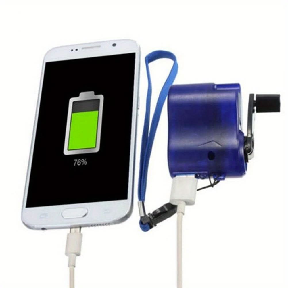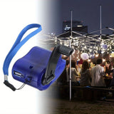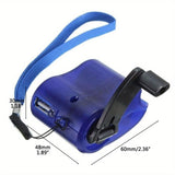 No batteries required—simply rotate the crank to produce power, even in remote locations or during power outages. Its vibrant blue design adds a touch of style while ensuring easy visibility in your gear bag. Keep this reliable hand-crank charger on hand for peace of mind wherever you go.