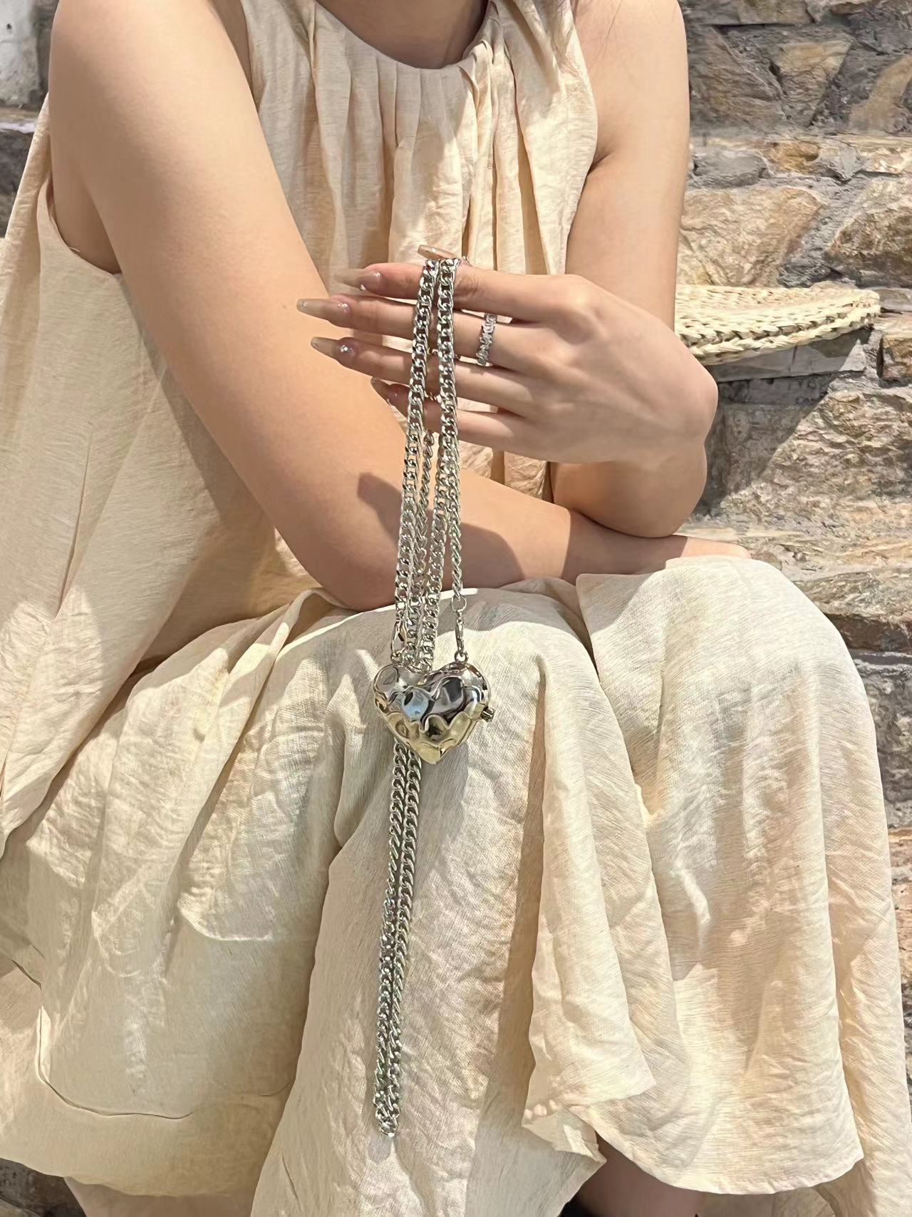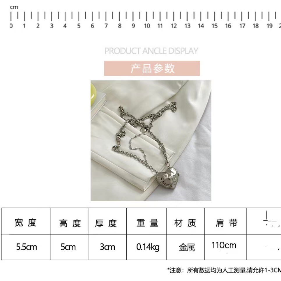 Add a touch of glam to your outfit with the Mini Heart Chain Crossbody Bag from our International Collection. This metallic silver handbag features a trendy heart-shaped design, making it the perfect fashion accessory for nights out, festivals, or everyday style. Compact yet functional, it fits your essentials like coins, cards, keys, or lip gloss, while the elegant chain strap allows for versatile wear—as a crossbody, shoulder bag, or waist purse.