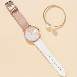 Elevate your style with this sleek minimalist quartz watch, featuring a comfortable PU strap and a modern design. Paired with a matching bracelet, it’s the perfect accessory for a refined, casual look. Ideal for everyday wear or as a thoughtful gift.