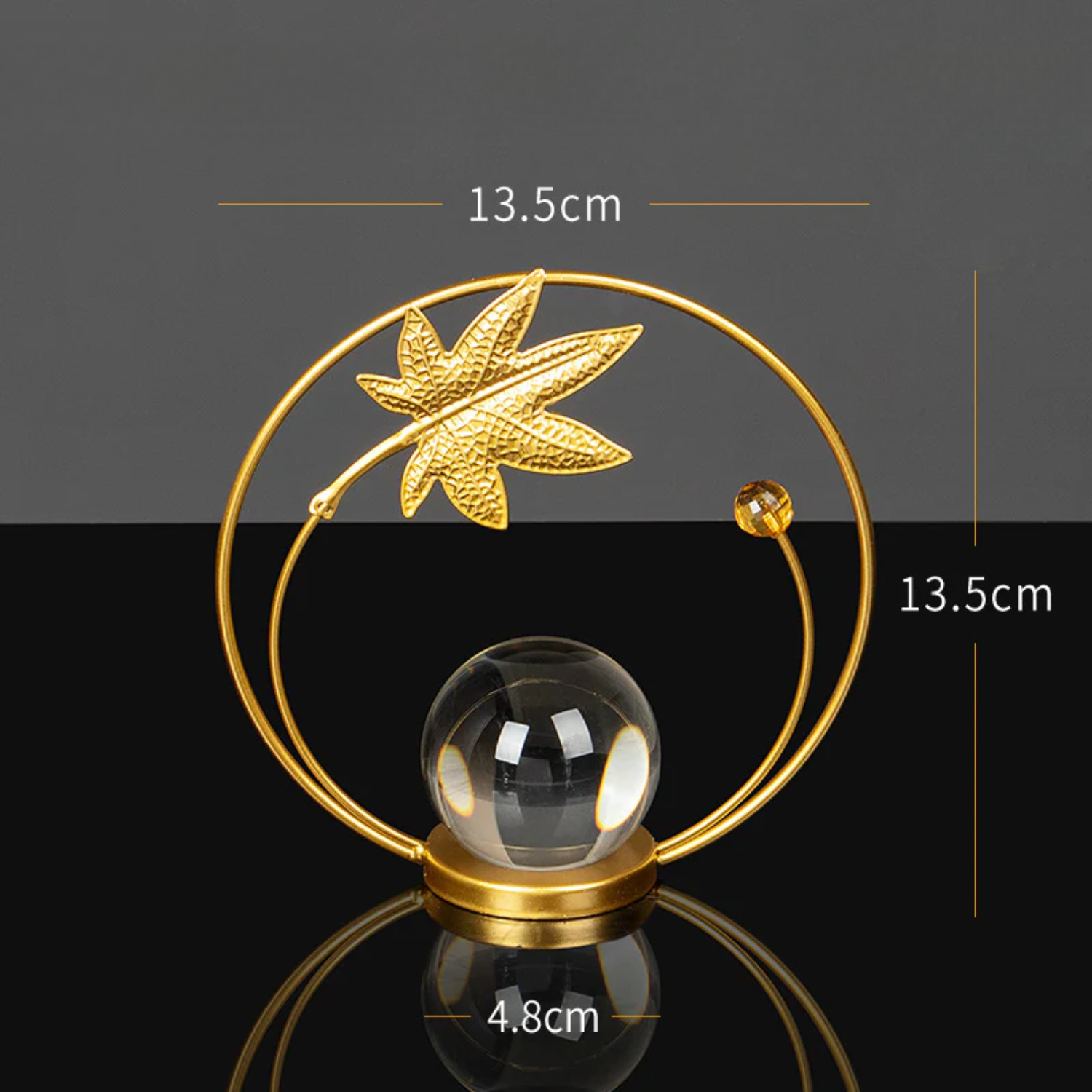 Elevate your living space with this modern gold iron crystal ball ornament, featuring elegant turtle, ginkgo, and maple leaf patterns. Crafted with a simple geometric design, this piece adds a touch of refined charm to any home setting. Perfect for display on shelves, tables, or desktops, it serves as a stunning conversation starter while enhancing your décor with a subtle yet sophisticated flair. Made from durable iron and finished in a sleek gold tone, this ornament blends seamlessly with modern simplicity styles. Handpicked from Abroad, this decorative accent brings global artistry right into your home. Ideal for anyone looking to add a unique, eye-catching centerpiece that complements various interior styles while showcasing exquisite craftsmanship.