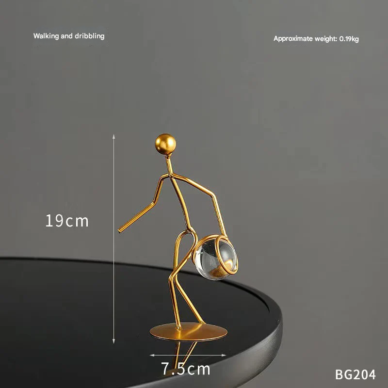 Add energy and elegance to your space with this modern sports figure decor, a striking piece that captures the motion and spirit of athleticism. Crafted from durable iron and finished in a rich gold tone, each sculpture showcases a dynamic pose—from one-handed shooting to dribbling and jumping. A crystal ball element at the base adds a touch of refinement, creating balance between power and poise. Perfect for home entrances, office shelves, or wine cabinets, this handcrafted accent adds personality without overpowering your décor. Its geometric style and clean lines make it a standout in minimalist and contemporary settings. Sourced from Worldwide Suppliers, this sculpture blends art, sport, and luxury in one bold decorative statement. Ideal for sports fans, art lovers, or anyone looking to enhance their space with meaningful design.