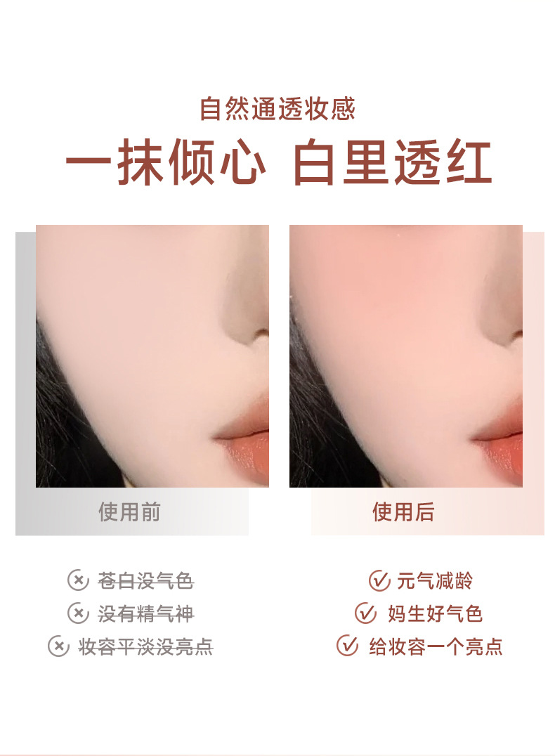 Formulated to conceal imperfections and softly sculpt your features, this multi-use cream blush works beautifully as a light contour or face brightener. The lightweight texture feels breathable on the skin, making it ideal for moms on the go or anyone seeking quick, natural coverage with a healthy pop of color.