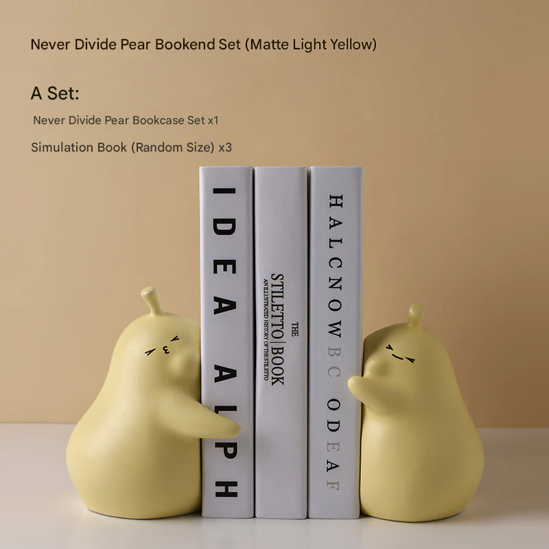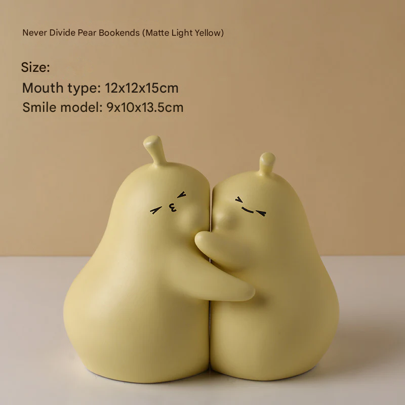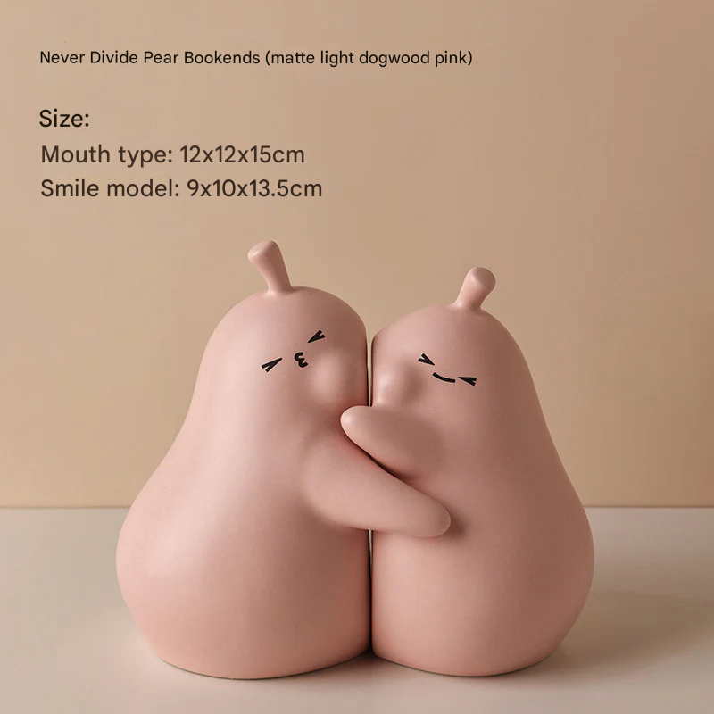 Add charm and character to your space with the Never Divide Pear Bookend Set, a playful yet functional desk accessory designed to keep your books upright in style. Made from smooth white porcelain, these hugging pear-shaped ornaments are perfect for desks, shelves, or bookcases—and double as meaningful gifts for friends, teachers, or coworkers.