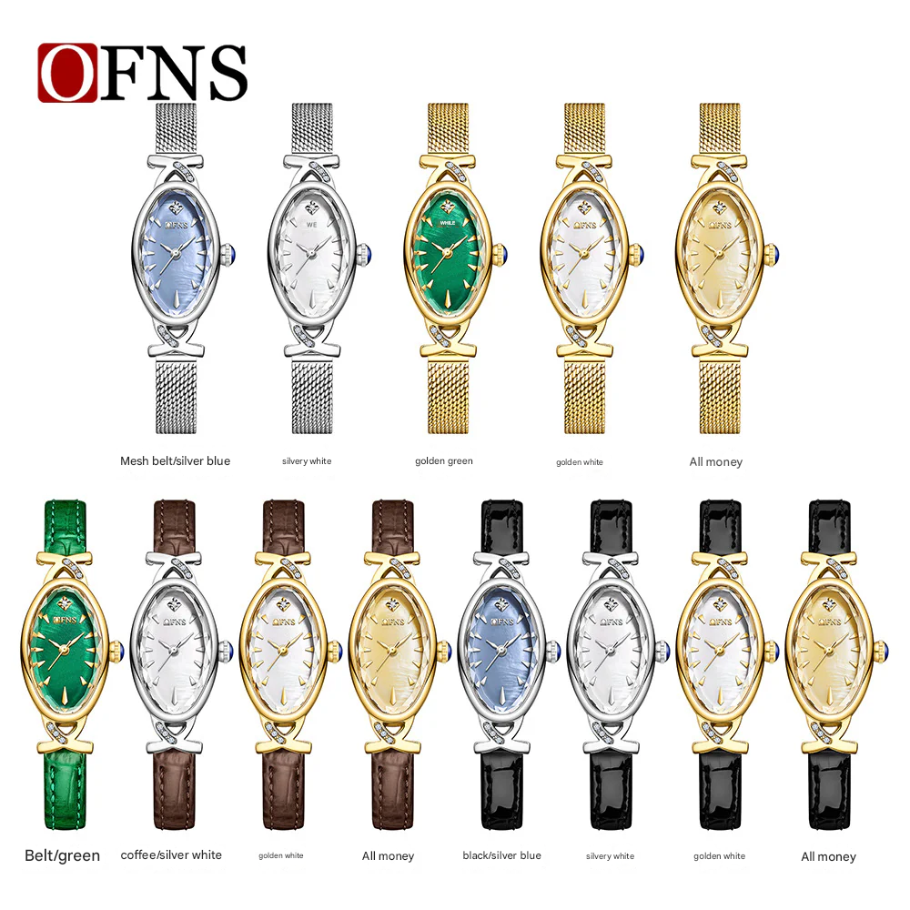 The OFNS Women’s Quartz Watch combines elegance with everyday practicality, making it a perfect accessory for work, casual outings, or special occasions. Featuring a stunning mother-of-pearl oval dial, this timepiece adds a touch of sophistication to any outfit. Its slim 9mm profile and lightweight design ensure comfortable wear, while the durable leather or mesh strap offers versatile styling options. With 30M water resistance, it can handle daily splashes and light rain with ease. The quartz movement provides precise timekeeping, while the screw-down crown and mineral tempered glass enhance durability. Handpicked from Abroad, this watch is crafted for women who appreciate both fashion and function. Whether you’re looking for a statement piece or an everyday essential, this waterproof quartz watch delivers timeless elegance with modern convenience.