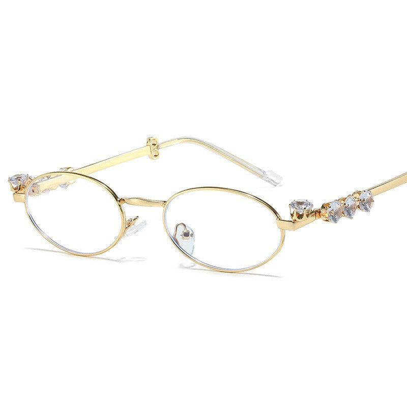 Elevate your everyday look with these Y2K-inspired oval anti-blue light glasses, designed to make a bold fashion statement. Featuring a shimmering pearl diamond-accented metal frame, this stylish pair offers a lightweight and secure clip-on design that flatters round face shapes. Whether you're browsing, streaming, or studying, the high-quality resin lenses help reduce blue light exposure, making them perfect for both fashion and function. Ideal for those who require myopia correction, these glasses blend nostalgia and glamor in one iconic accessory. Handpicked from Abroad, they embody the trendsetting flair of global streetwear culture, combining comfort, vision support, and head-turning aesthetics for the style-savvy individual.