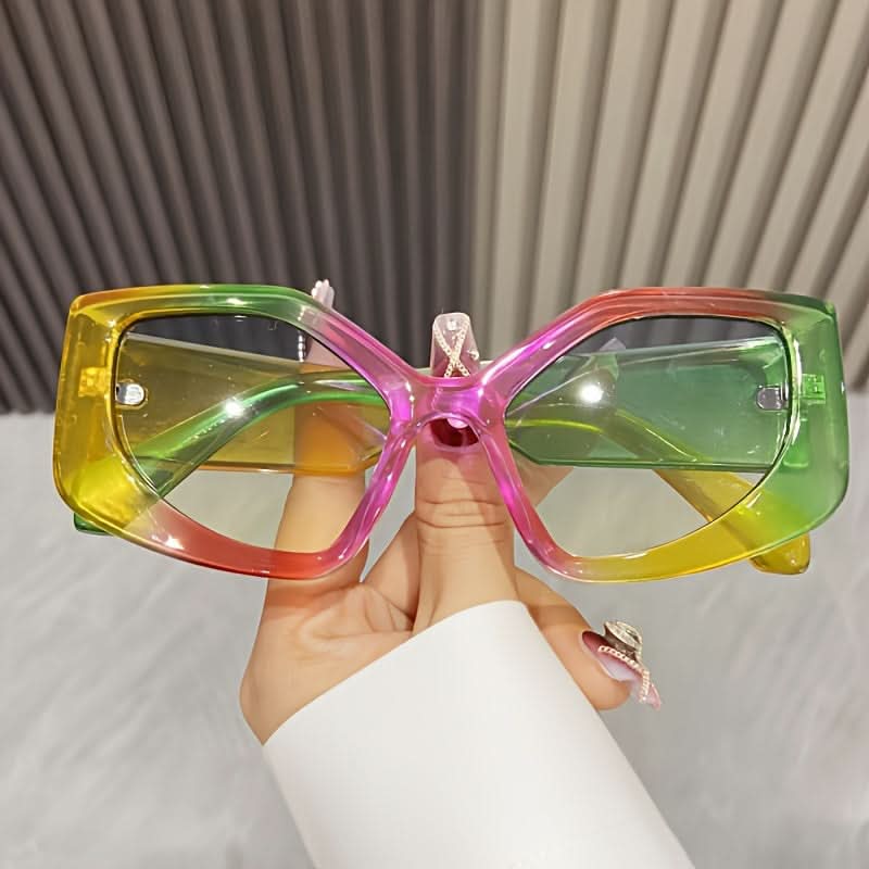 Step up your style game with these Oversized Cat Eye Color Block Sunglasses, perfect for making a statement at any beach party or club. Featuring a futuristic, Y2K-inspired design, these sunglasses blend bold color blocking with a flattering cat-eye shape that suits both women and men. The polycarbonate frame ensures durability and lightweight comfort, while the anti-reflective lenses offer clear vision and protection from the sun. Whether you're hiking, attending a party, or simply enjoying a sunny day, these sunglasses add the perfect finishing touch to your outfit. With their vibrant look and high-fashion appeal, they're a must-have accessory for trendsetters who love combining functionality with style.