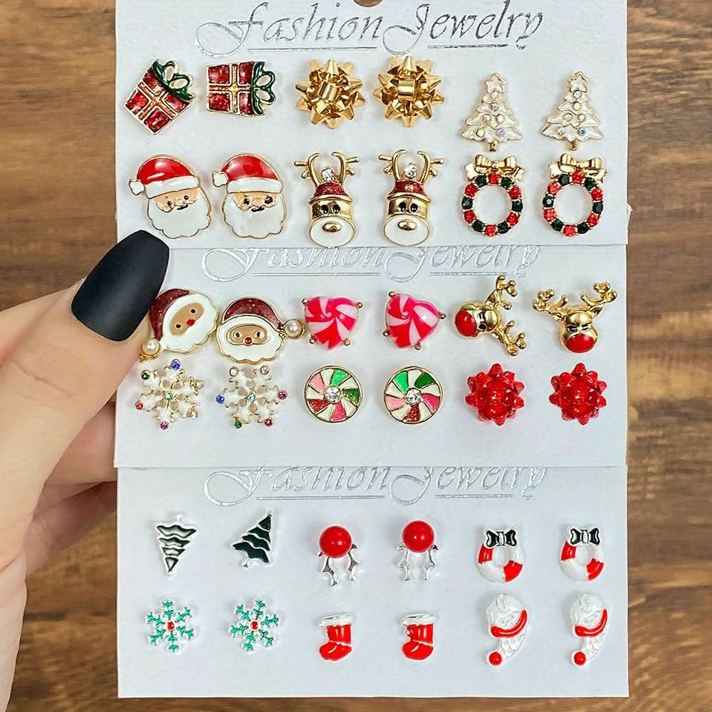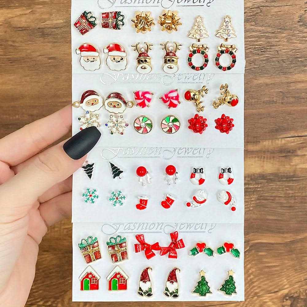 Celebrate the holiday season in style with this 30 Pairs Christmas Stud Earrings Set. Featuring adorable enamel designs, this set includes festive Christmas tree, snowman, and other cute cartoon-inspired earrings. Made from durable alloy, these lightweight earrings are perfect for holiday gifting, offering a charming touch to any Christmas outfit. Whether you’re attending a holiday party or looking for a fun way to spread festive cheer, these stud earrings are a delightful accessory for women of all ages. The hypoallergenic alloy ear needles ensure comfort for all-day wear, while the cute, simple designs add a playful yet elegant twist to your holiday look. This set makes a thoughtful and fun Christmas gift, giving your loved ones a cheerful and stylish accessory to wear throughout the season. Perfect for adding some holiday spirit to your wardrobe!