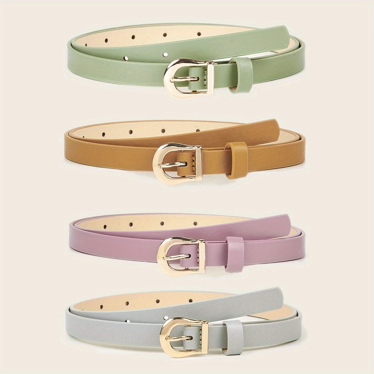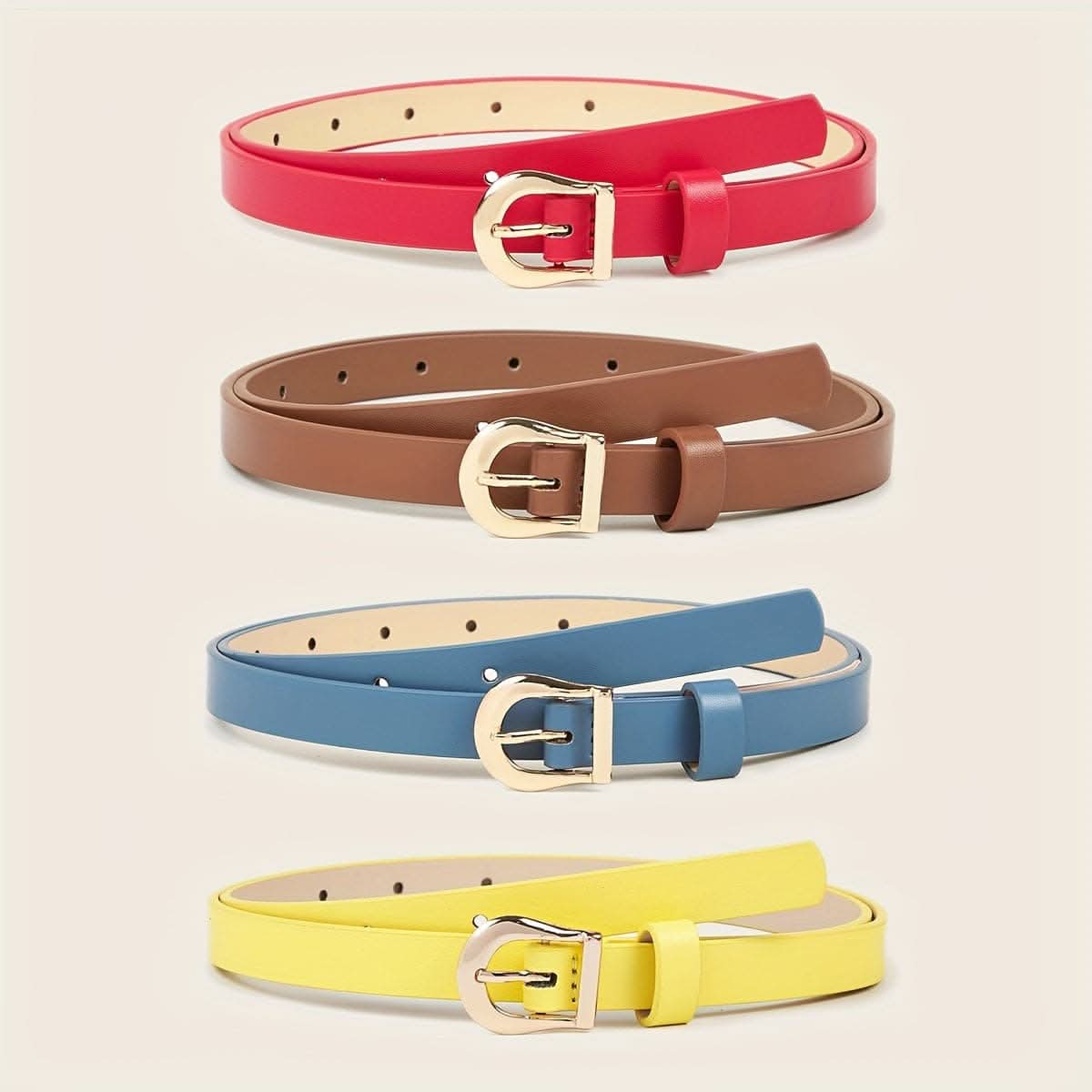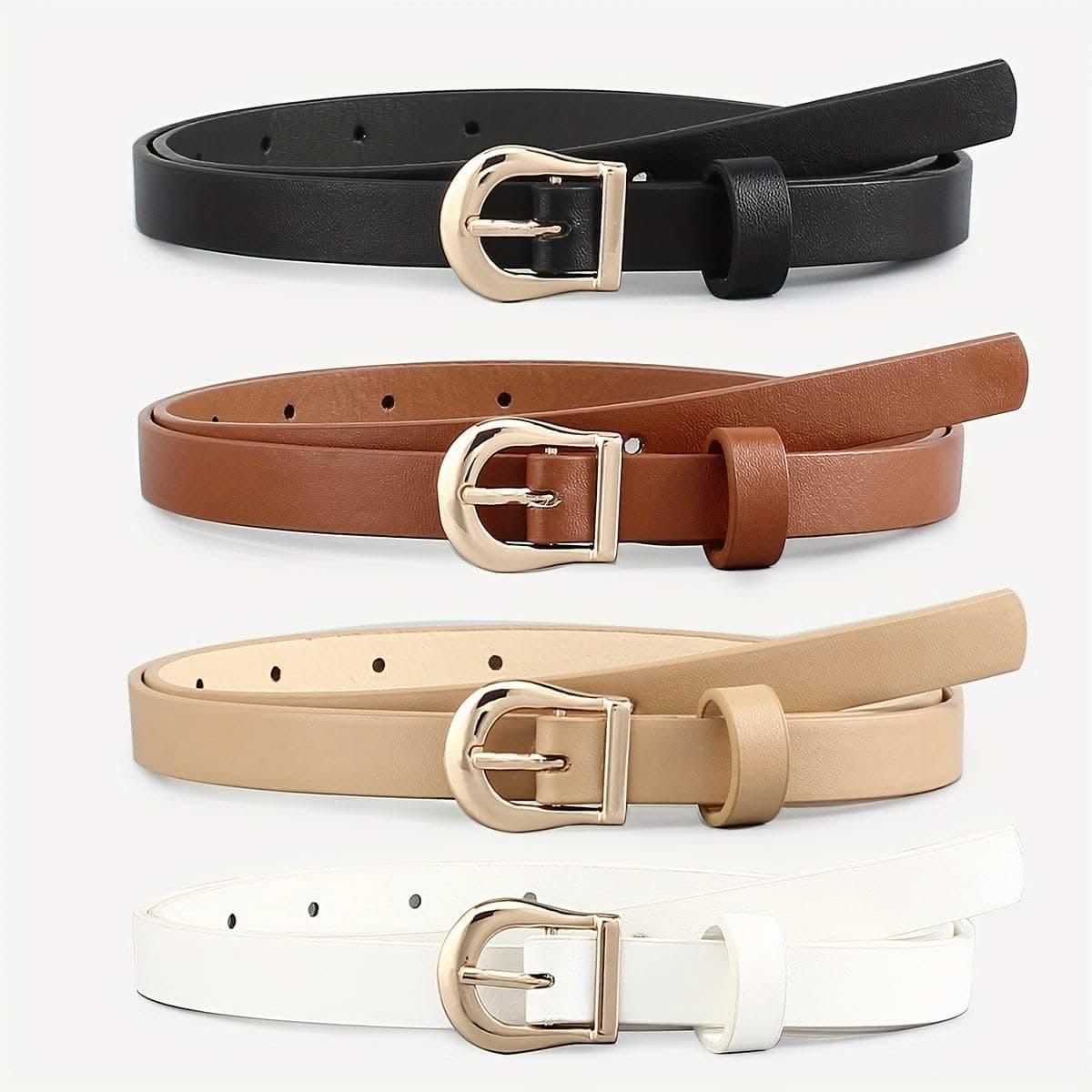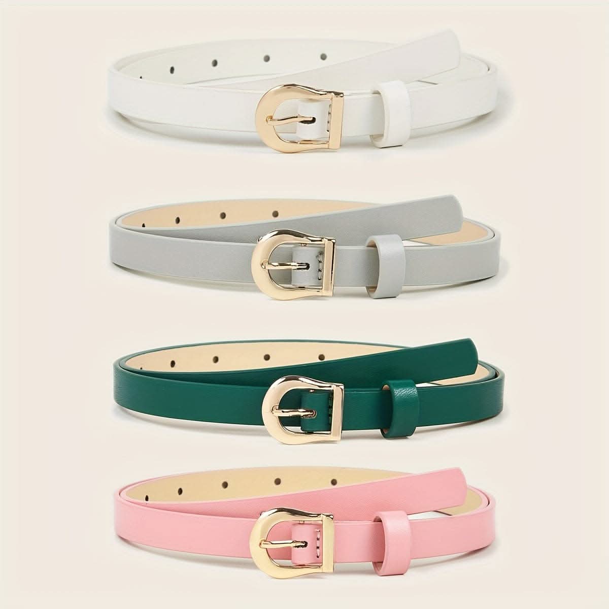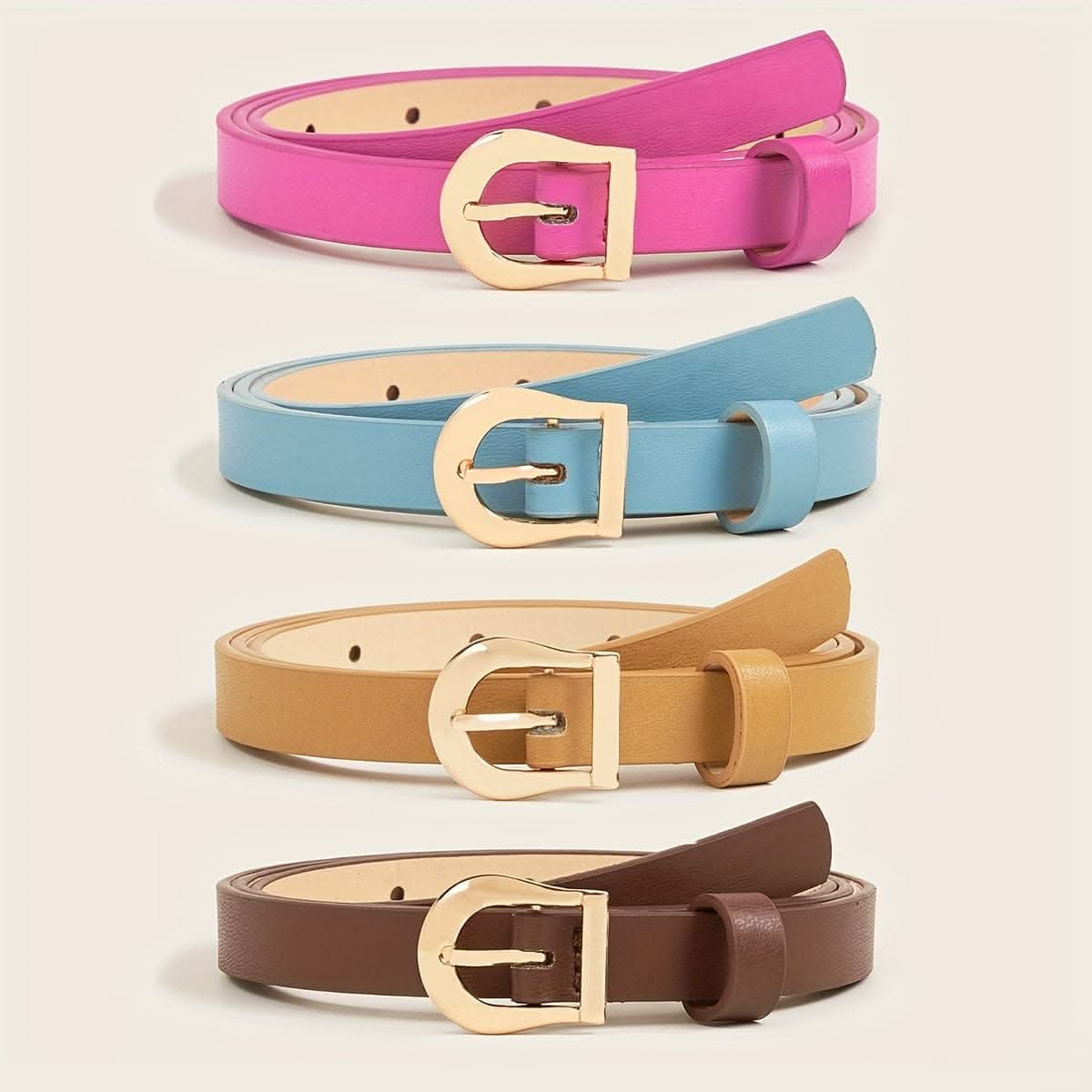 Upgrade your wardrobe with this versatile 4-pack women’s belt set, featuring elegant gold buckles and classic solid colors to suit any occasion. Crafted from quality leather, each belt is designed with a light, comfortable feel that complements both casual and dressy outfits. These belts offer an easy way to add a touch of sophistication to your look, with colors that seamlessly pair with jeans, dresses, or skirts. Ideal for mature, everyday styling, this set provides a range of options to effortlessly complete any outfit. The adjustable design and secure golden buckle closures ensure a perfect fit, making this belt set a timeless addition to your accessory collection. Perfect for daily wear or special occasions, these belts bring both style and functionality to your wardrobe.