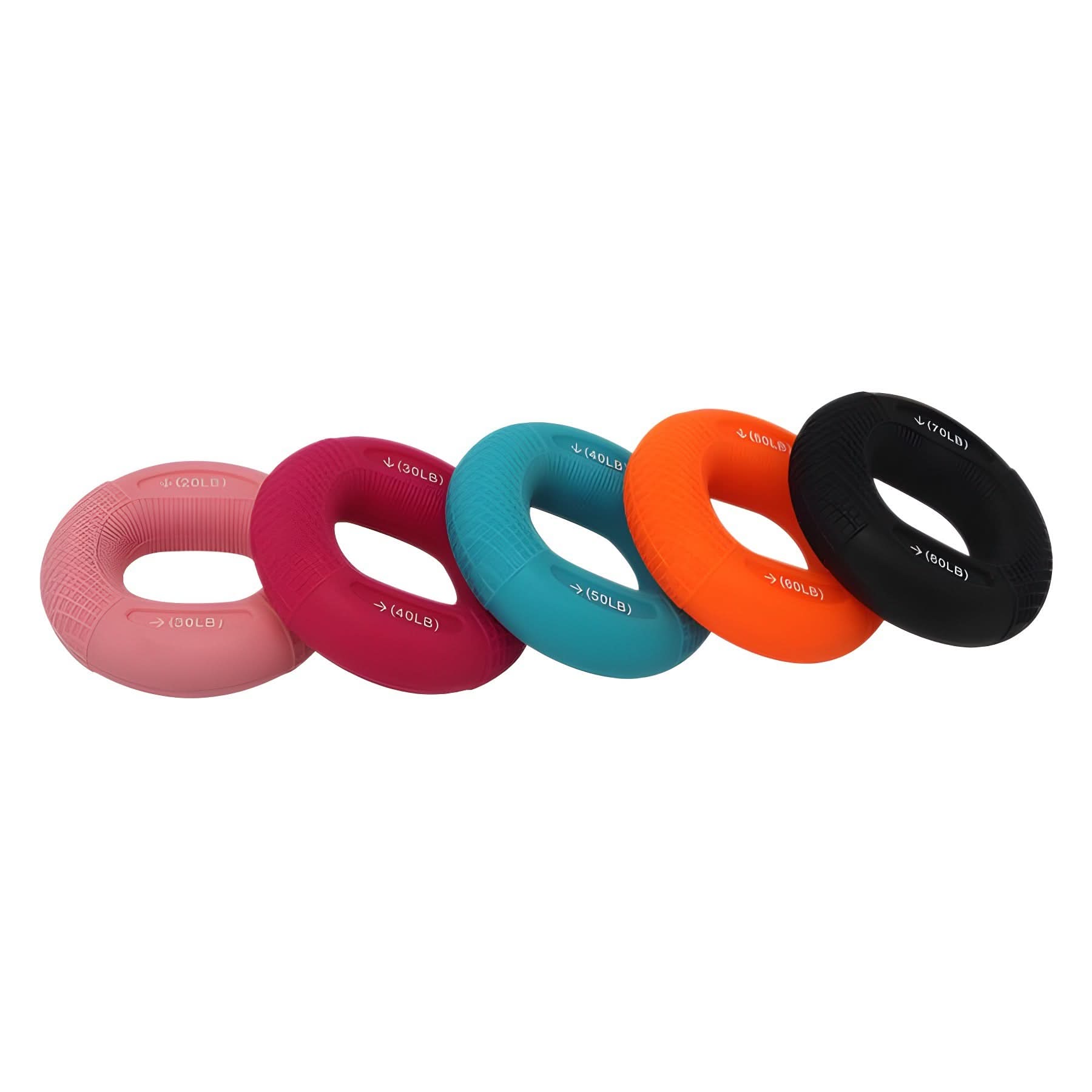 Boost your hand strength and endurance with this set of 5 Silicone Hand Grip Strengtheners, ranging from 20-80 lbs. Perfect for fitness enthusiasts, athletes, or anyone looking to improve hand grip, forearm strength, or rehabilitate from injuries. Made from high-quality silicone, these durable, double-strength rings offer effective resistance for a wide range of exercises. Whether you're using them for sports training, health massages, or daily workouts, they are versatile and easy to use. Available in vibrant colors like pink, red, blue, orange, and black, they’re not only functional but stylish too. Compact and portable, this set is ideal for at-home training or on-the-go workouts. Improve grip, enhance flexibility, and increase overall hand strength with this essential fitness tool.