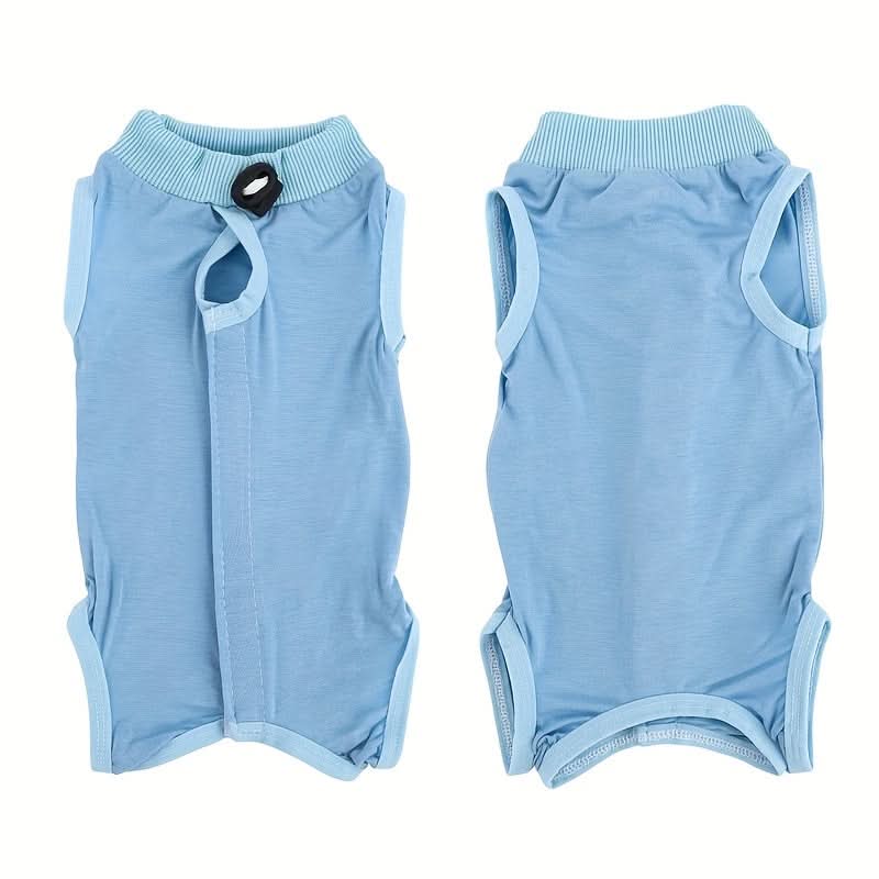 Help your cat recover in comfort with this soft, super-elastic recovery jumpsuit designed for post-surgery care. Made from 100% acrylic fabric, this anti-licking and biting suit ensures your pet stays safe while healing. The breathable material and secure hook-and-loop closure offer a snug yet flexible fit, allowing freedom of movement without irritation. Ideal for preventing your cat from accessing wounds, it provides a stress-free alternative to traditional cones. Perfect for small breeds, this jumpsuit is both practical and gentle on your pet's skin, ensuring a smooth recovery. Easy to clean and machine washable.