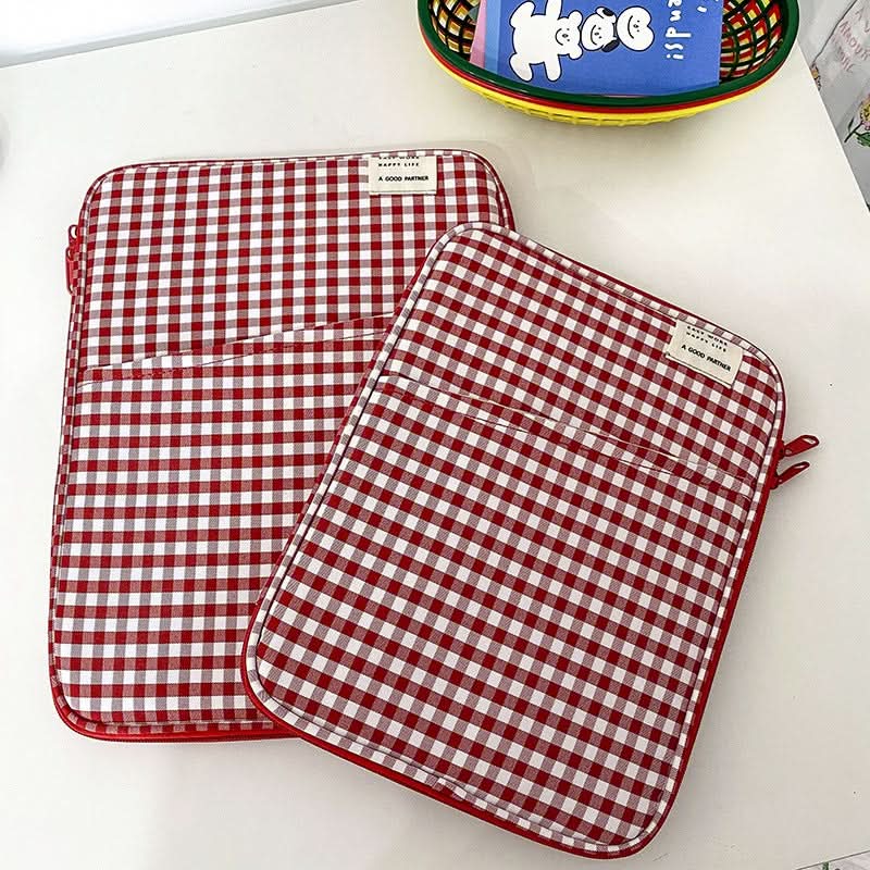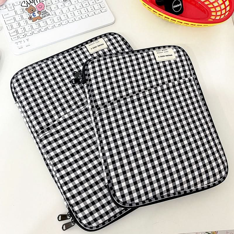 Available in two sizes (11-inch: 29x22 cm, 13-14 inch: 34x26 cm), this unisex storage bag fits snugly, making it ideal for carrying your device on the go. The soft interior lining keeps screens and surfaces scratch-free, while the chic plaid pattern adds a stylish flair to your daily routine.