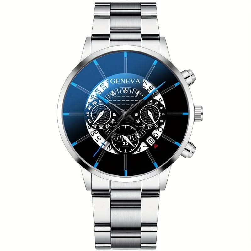 This popular men's quartz watch features a stainless steel strap and a stylish calendar function. Its fashionable design makes it an ideal choice for gifts, combining elegance with practicality for any occasion.