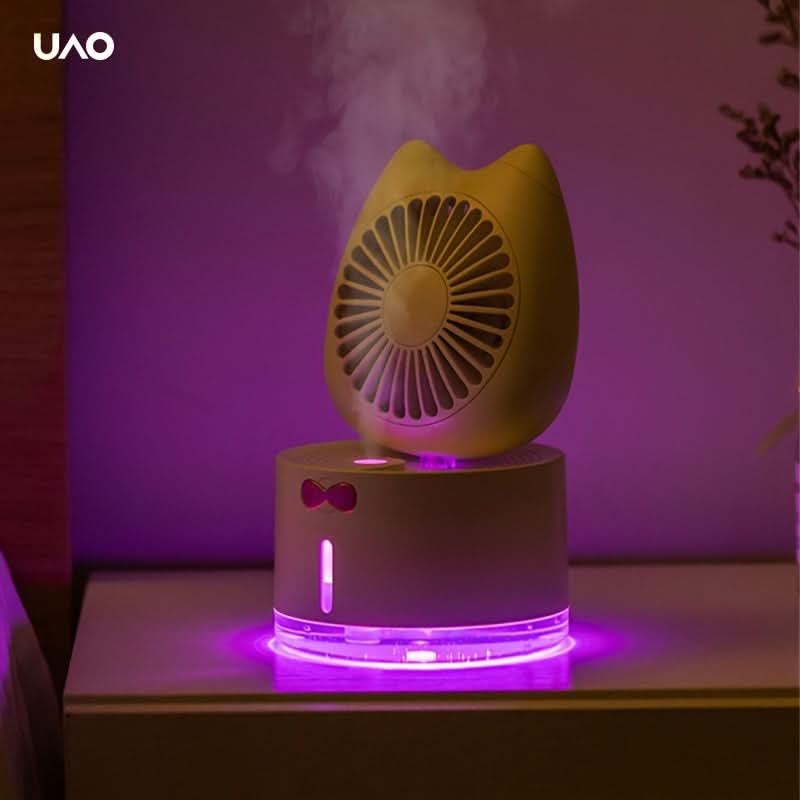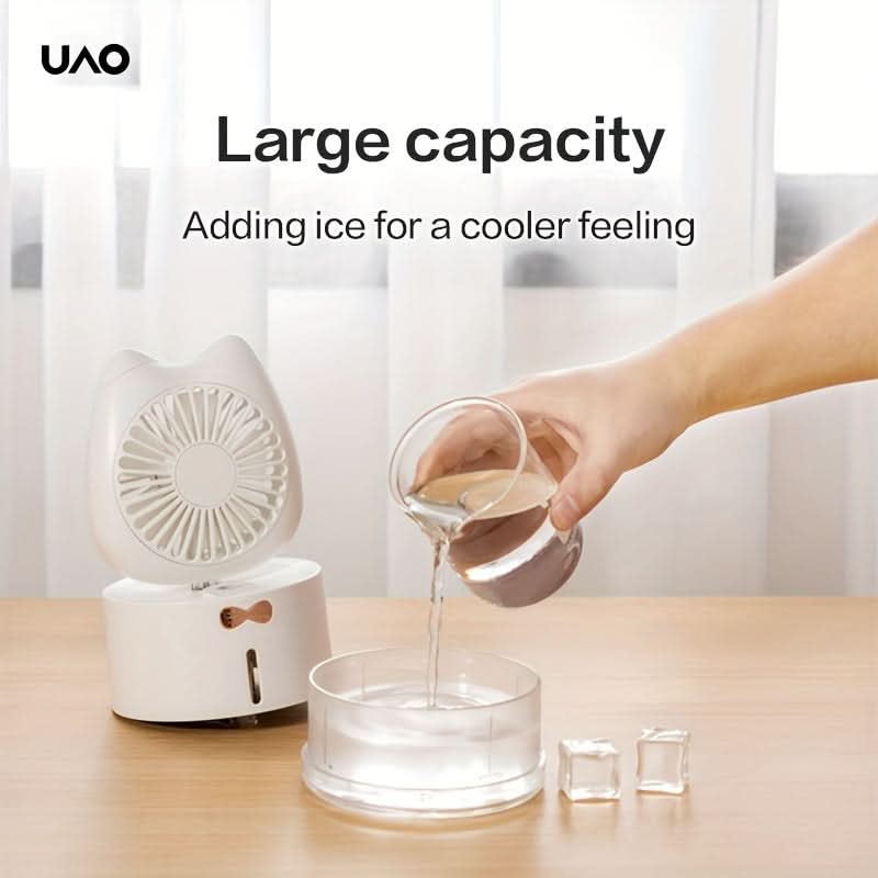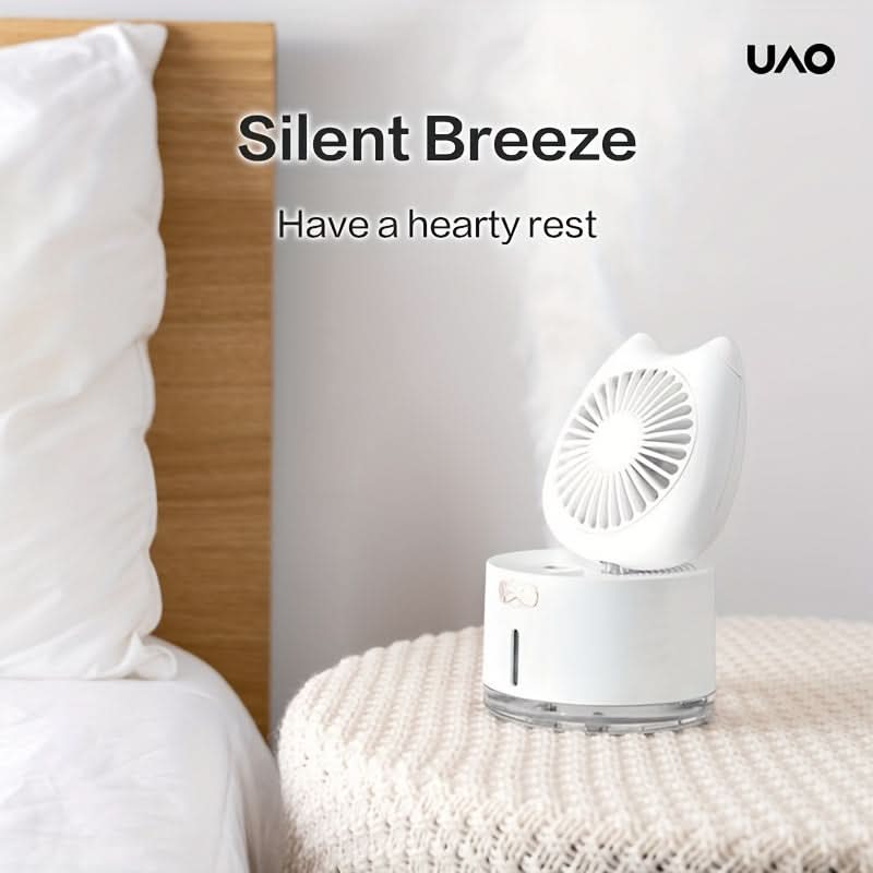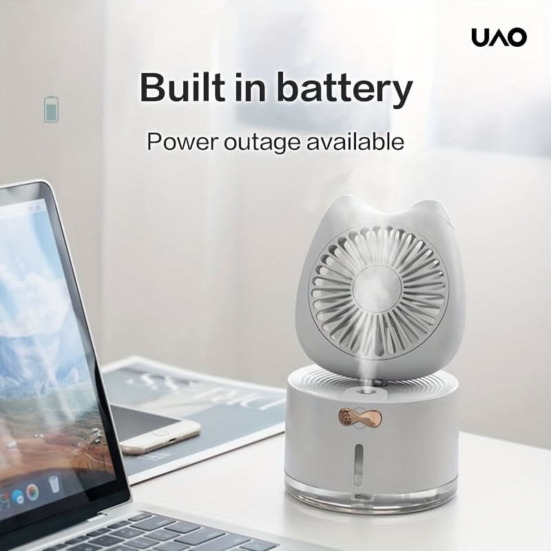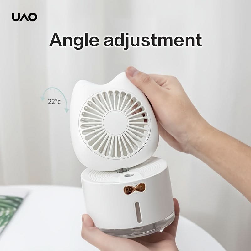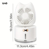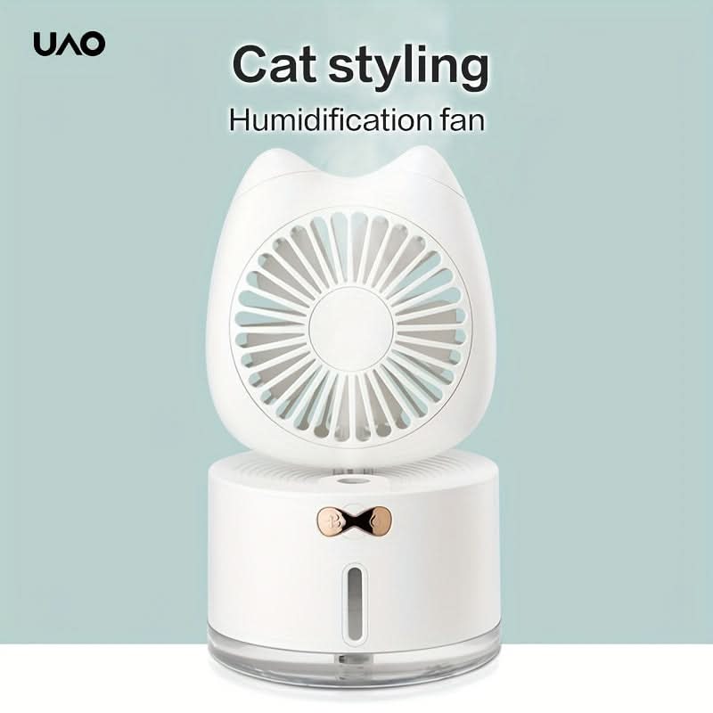 Stay cool and comfortable with the Portable Cat-Shaped USB Humidifier & Fan, a multifunctional device designed to enhance any room. Combining a humidifier, desk fan, and atmosphere light, this adorable gadget is perfect for bedrooms, offices, or study spaces. The built-in rechargeable lithium battery ensures wireless convenience, while the durable ABS material makes it lightweight and long-lasting.