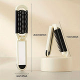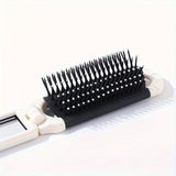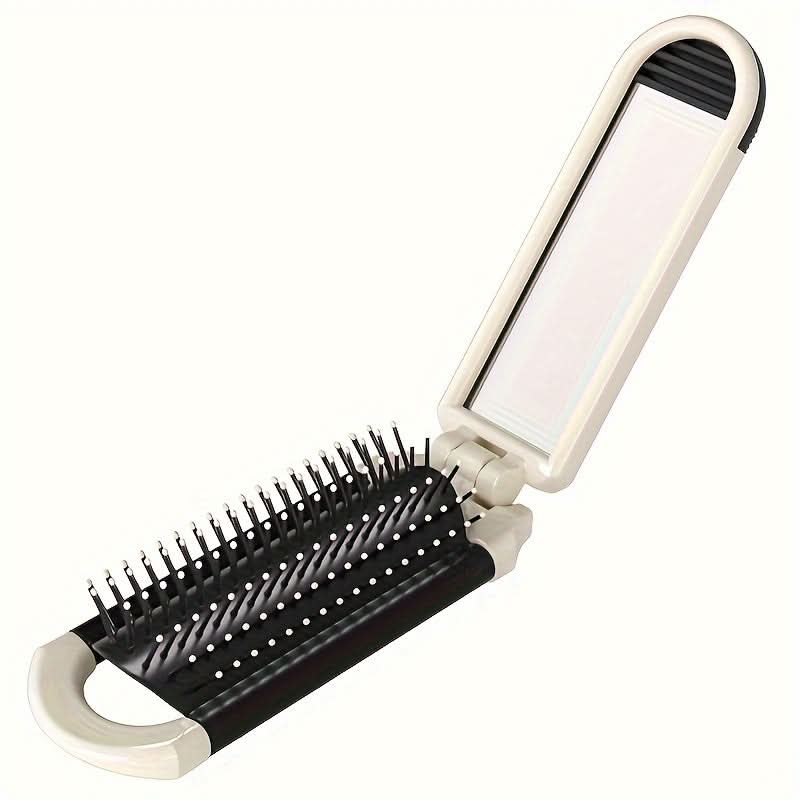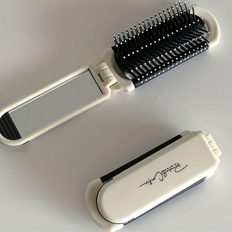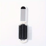 Stay stylish on the go with this Portable Folding Mirror Comb, a 2-in-1 hairbrush and mirror designed for effortless styling and touch-ups. The massage air cushion and flexible plastic bristles gently detangle knots, reducing breakage while keeping hair smooth and frizz-free. Its compact, foldable design makes it perfect for travel, gym bags, or daily touch-ups. The detachable reflective plate adds convenience, allowing you to check your look anytime. Made with a durable ABS plastic handle, this lightweight brush offers a comfortable grip for easy use. Whether you're styling, detangling, or freshening up on the go, this sleek and functional hair tool is a must-have for anyone who loves quick, hassle-free grooming. Perfect for all hair types—your go-to beauty essential!