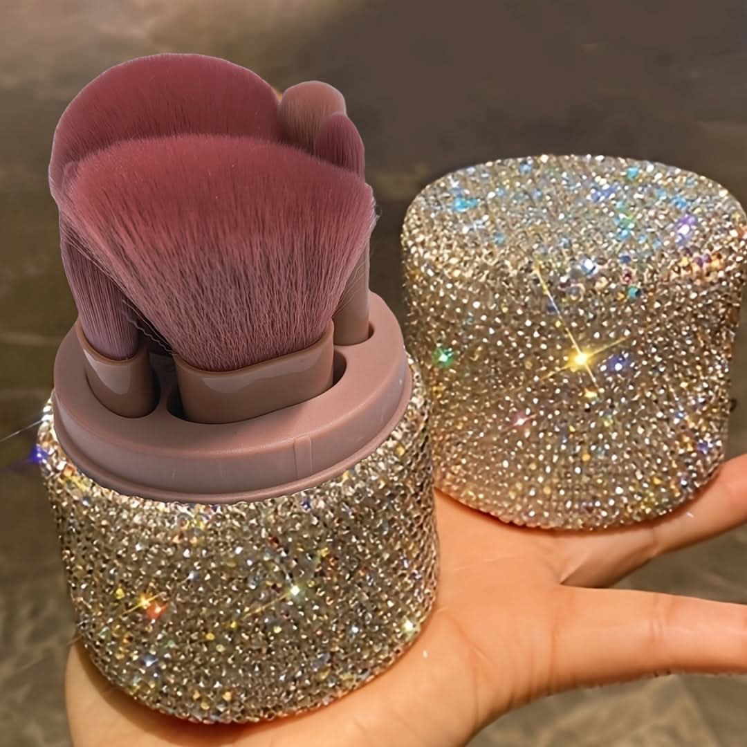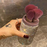 This portable makeup brush set comes in a dazzling glitter storage bucket with rhinestone accents and a dust-proof lid. Complete with powder, eye shadow, and foundation brushes, it’s both functional and stylish, making it a must-have for beauty enthusiasts on the go. Perfect for keeping your brushes clean and organized in style!