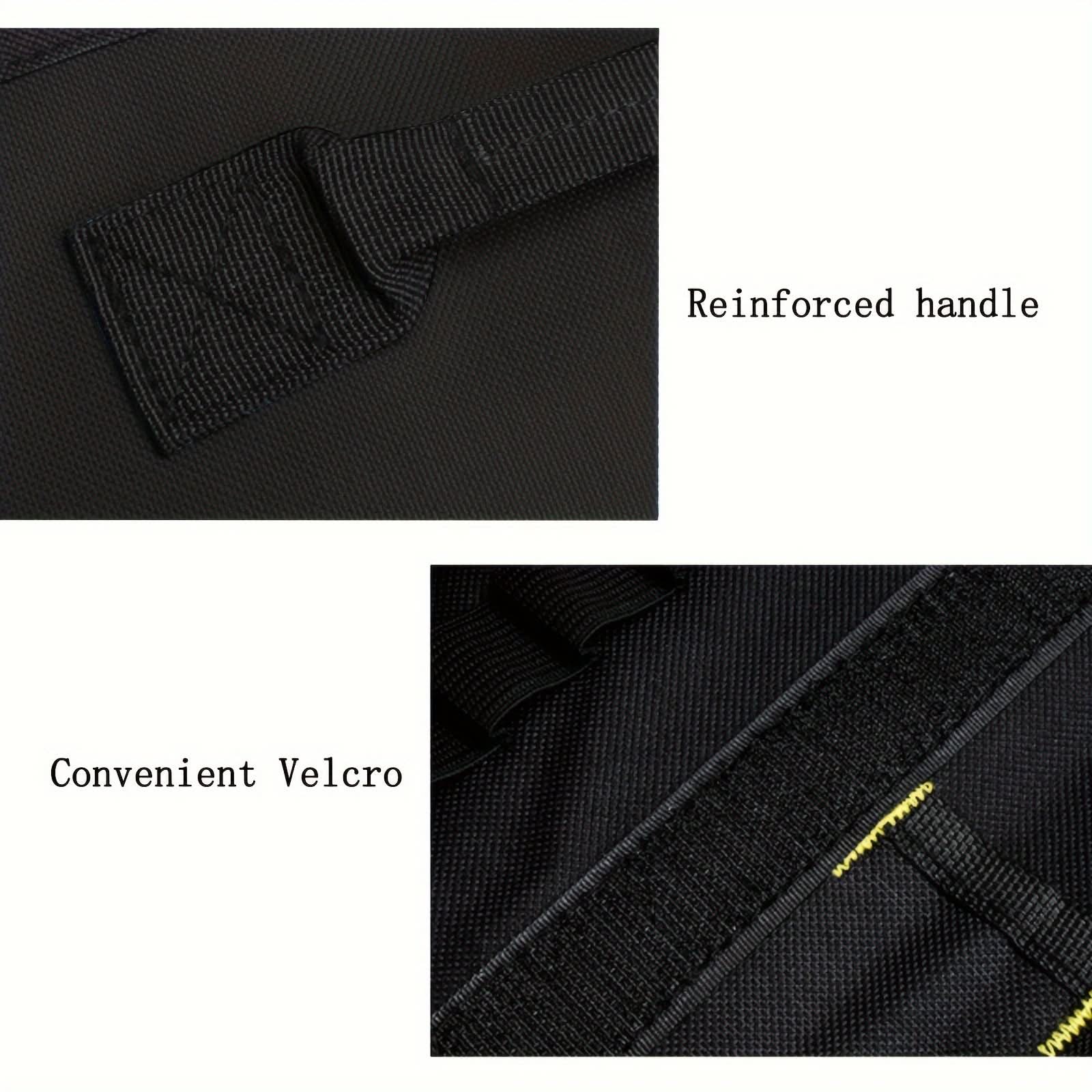 Measuring 35.515.73cm, it’s the perfect size to carry all your small tools, screws, and hardware without being bulky. The carry handle makes it convenient to transport from job site to job site. Whether you're working on electrical repairs, telecom installations, or outdoor maintenance, this multi-function tool pouch provides a practical, hands-free solution for staying organized.