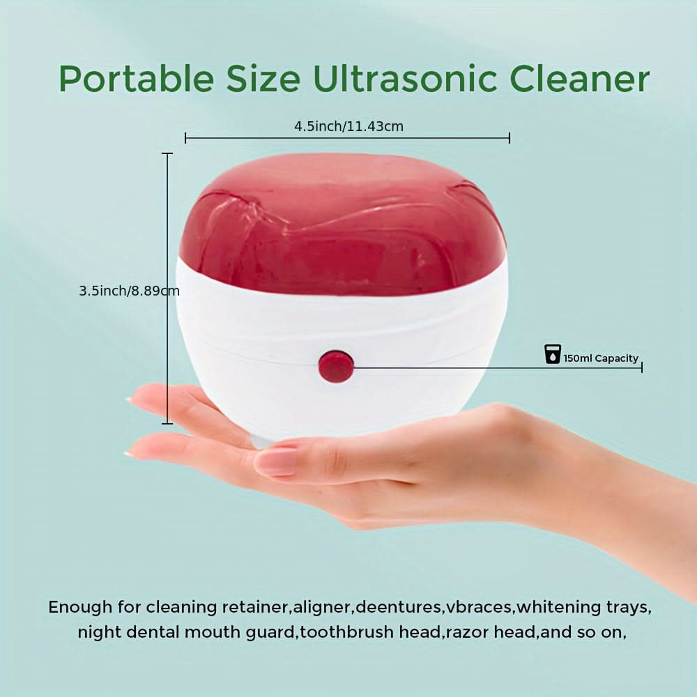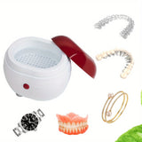 Keep your dentures, retainers, and jewelry sparkling clean with our portable ultrasonic denture cleaner. This innovative cleaning device uses micro-vibration technology to effectively remove dirt and stains without damaging your valuable items. Compact and waterproof, it's perfect for home use or travel, allowing you to maintain your oral hygiene and jewelry care wherever you go. Powered by easy-to-find AA batteries, this non-rechargeable device is user-friendly and convenient. Simply place your items in the cleaner, turn it on, and let the ultrasonic waves do the work. Say goodbye to stubborn stains and hello to a bright, fresh smile with this essential cleaning tool that combines efficiency with portability. Enjoy the peace of mind that comes with knowing your dental appliances and jewelry are always in top condition!
