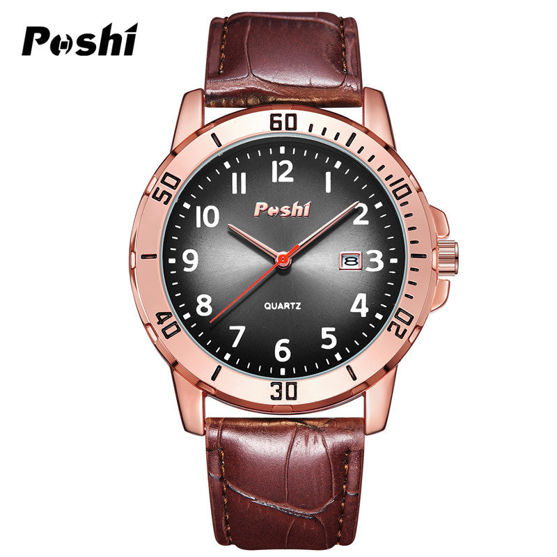 Elevate your everyday look with the POSHI Men's Leather Strap Watch—a perfect blend of style and function. Featuring a sleek 44mm round dial and a durable leather band, this timepiece is designed for both business and casual wear. Its 30m water resistance and luminous hands make it practical for day-to-night use, while the clear date calendar ensures you're always on schedule. The slim 10mm case and 20mm band width offer a comfortable fit without compromising on style. Whether you're dressing up or down, this watch adds a touch of timeless sophistication to your outfit.