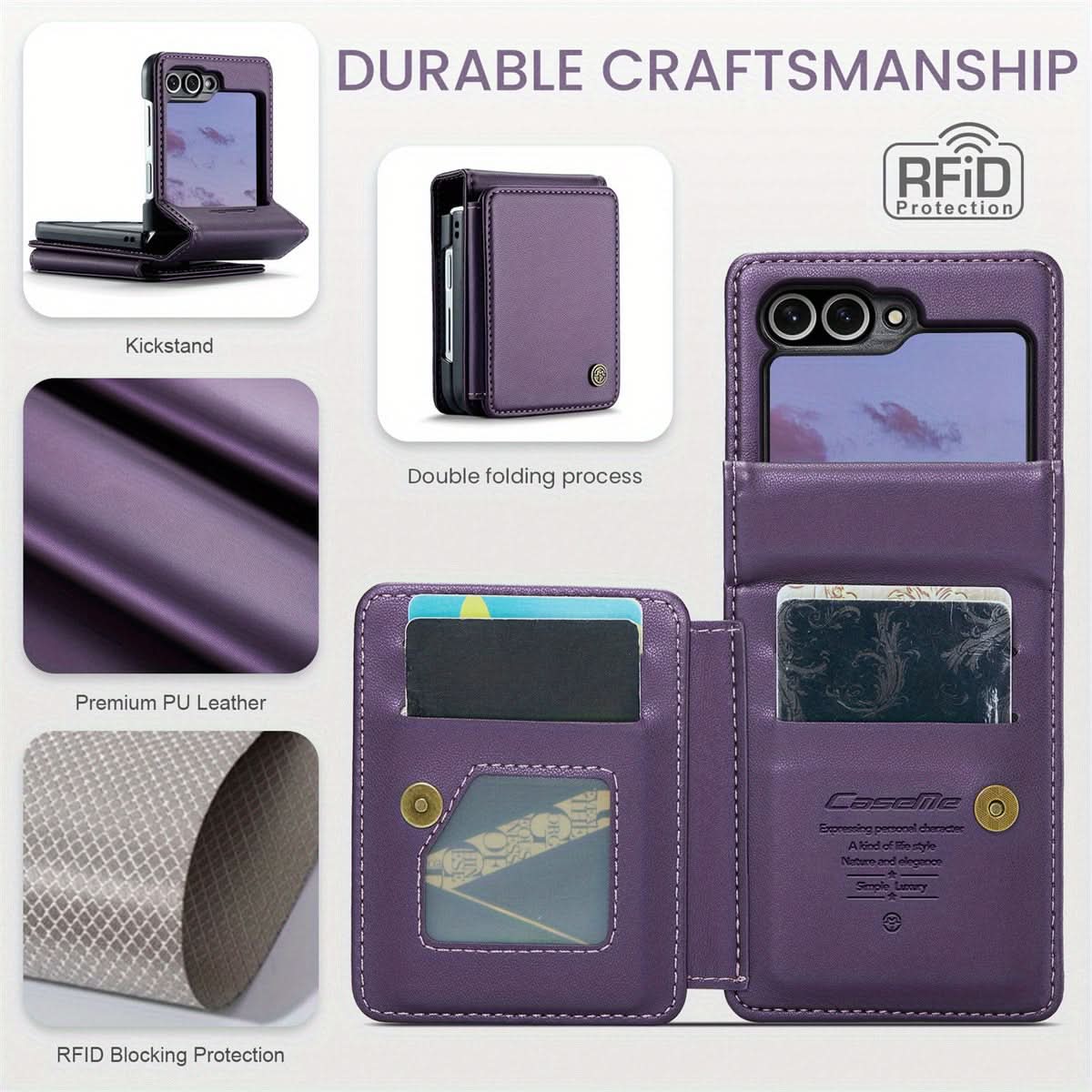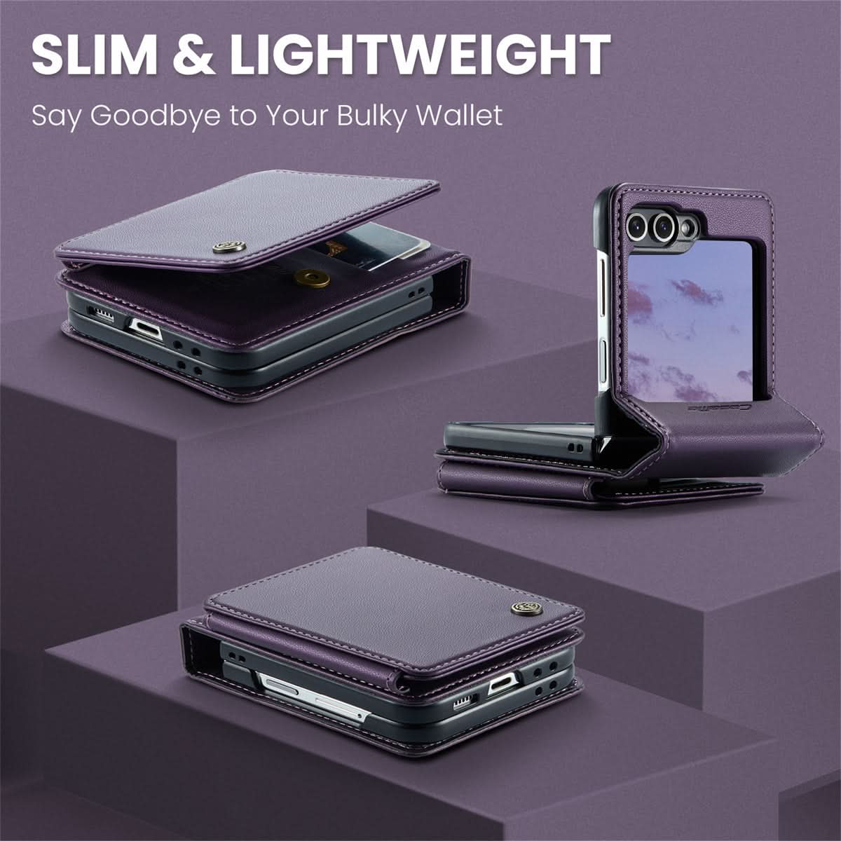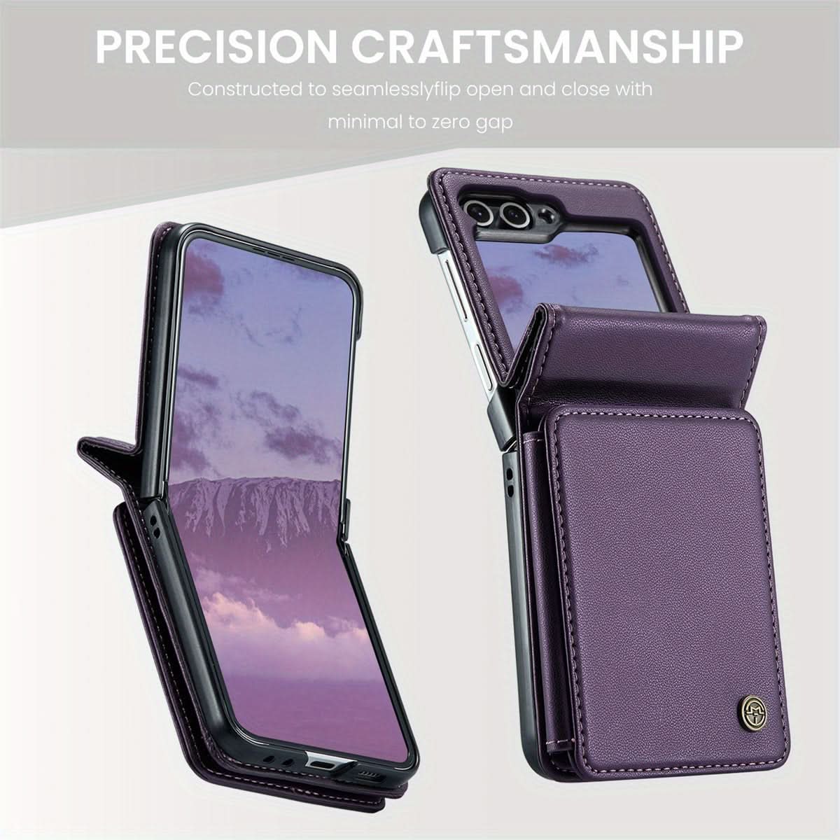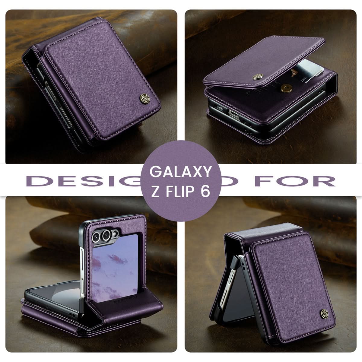 Safeguard your essentials with our premium faux leather wallet case for the Samsung Galaxy Z Flip 6. Featuring RFID-blocking technology and a detachable wristlet, this stylish case keeps your cards secure while adding a touch of elegance to your on-the-go lifestyle.