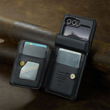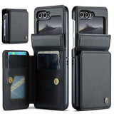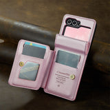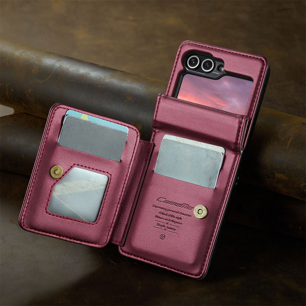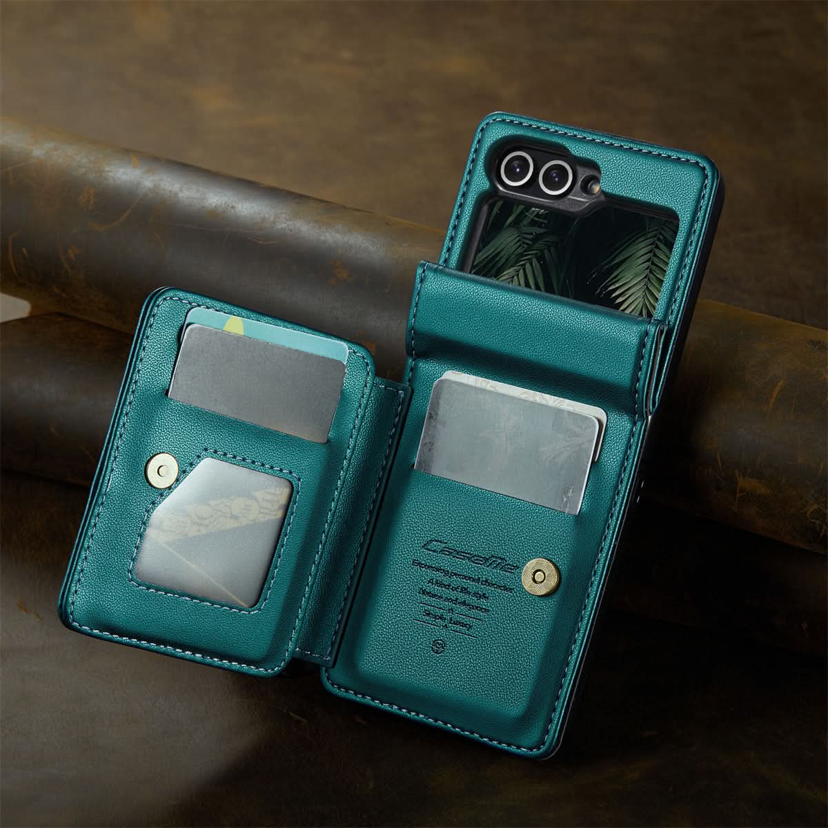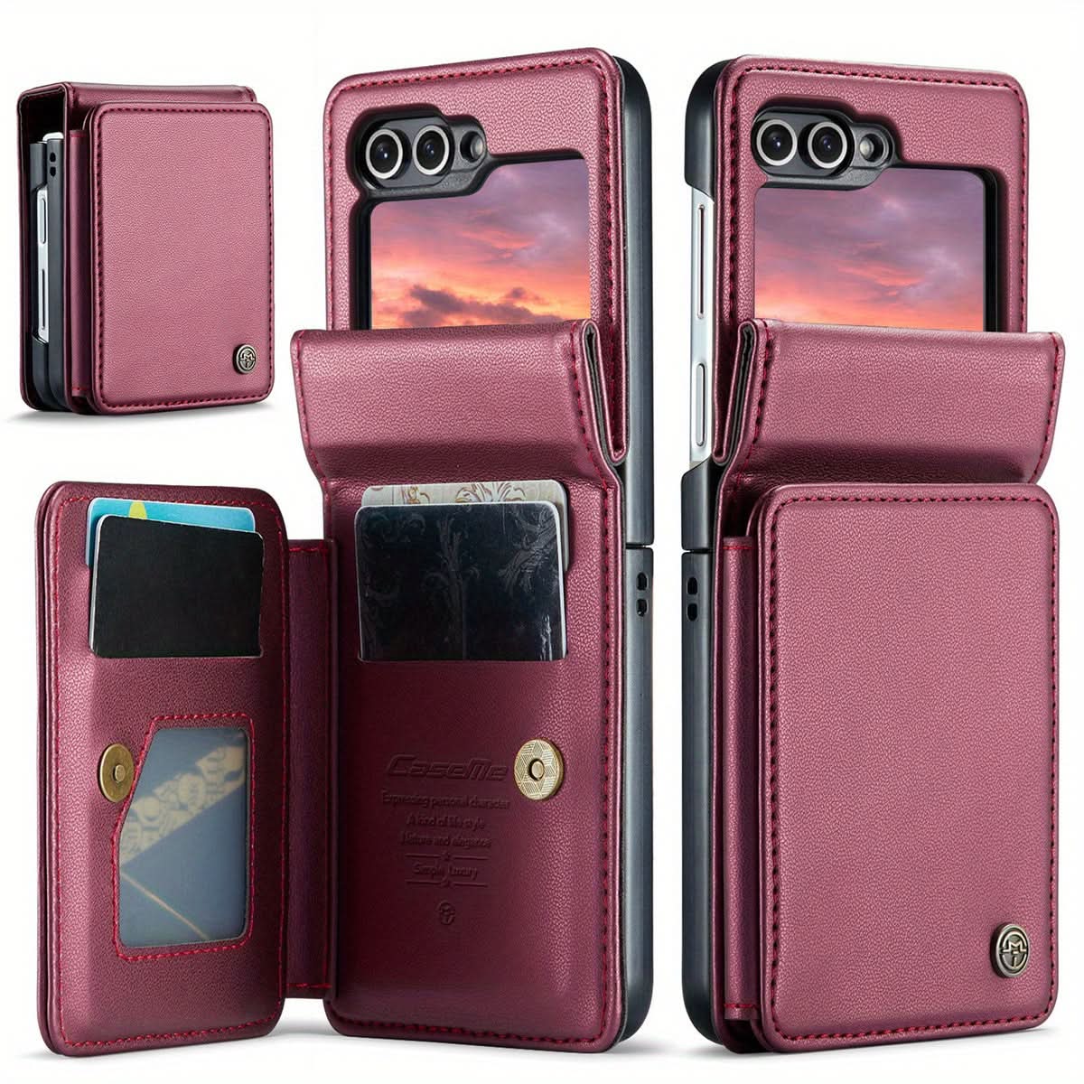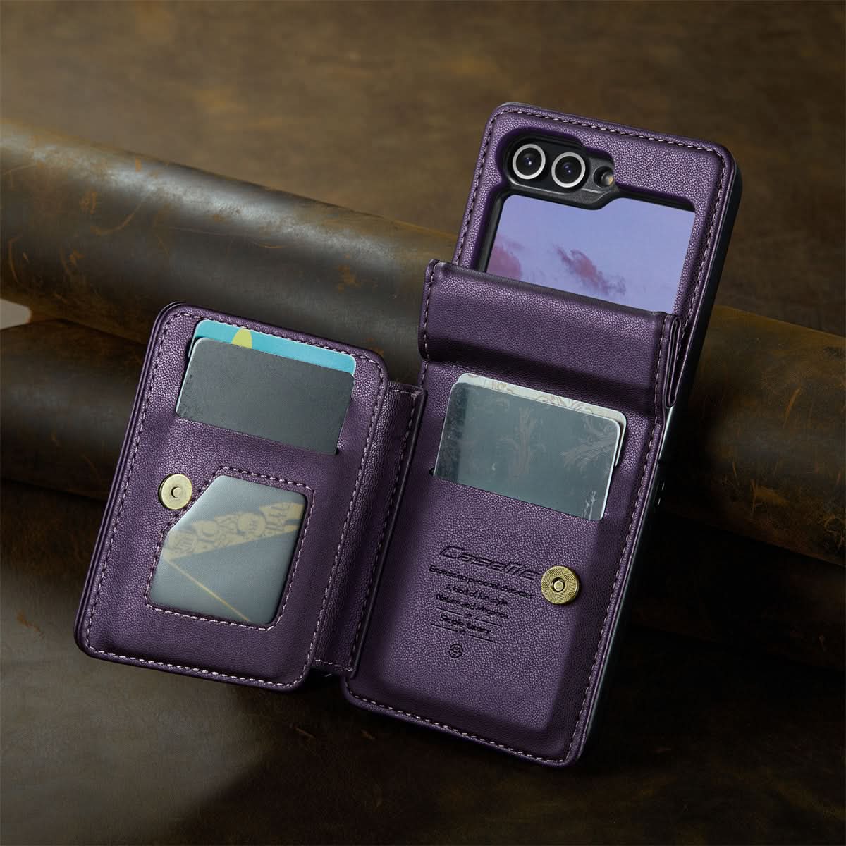 Safeguard your essentials with our premium faux leather wallet case for the Samsung Galaxy Z Flip 6. Featuring RFID-blocking technology and a detachable wristlet, this stylish case keeps your cards secure while adding a touch of elegance to your on-the-go lifestyle.