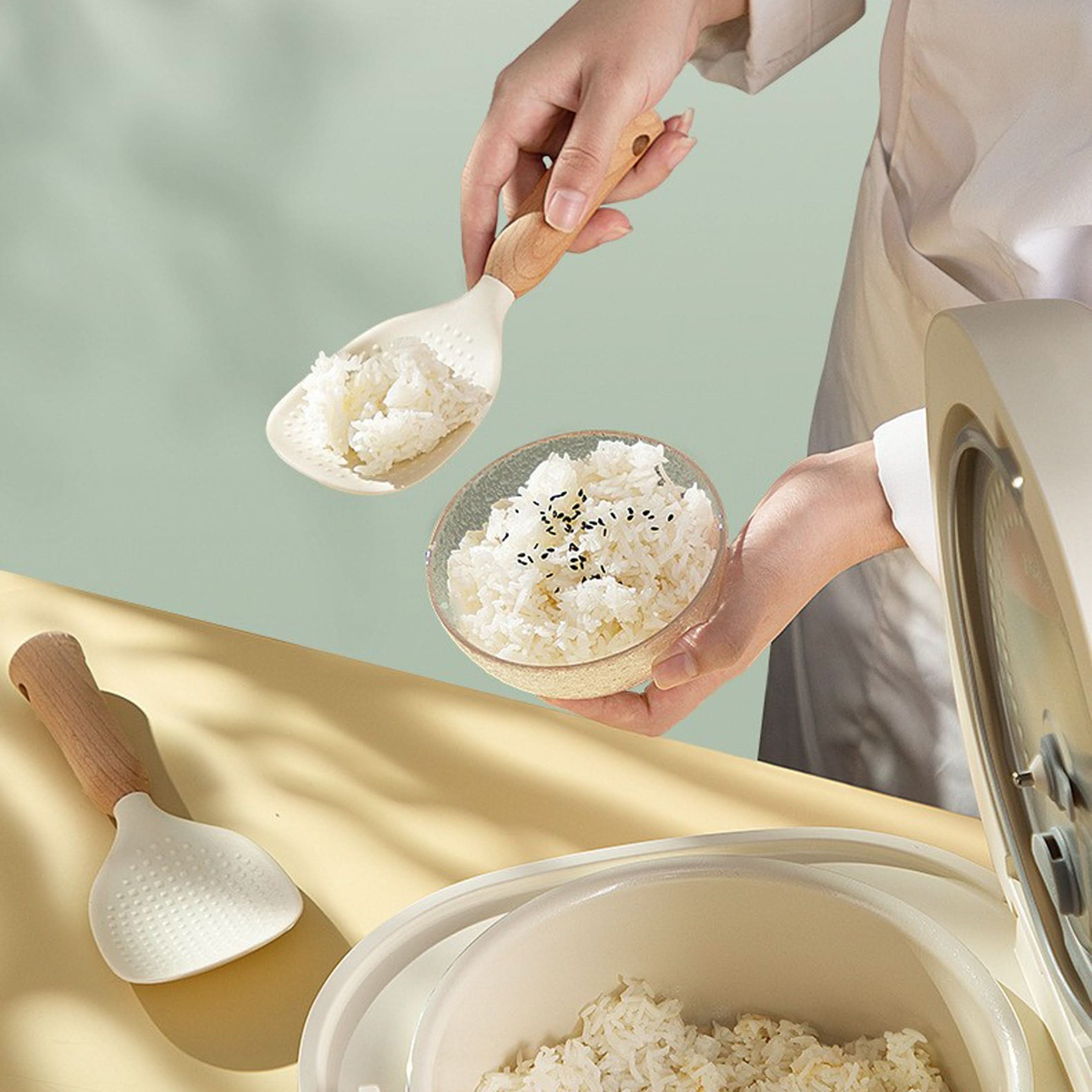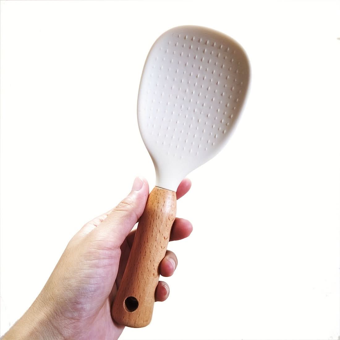 Make every meal prep smoother with this premium silicone rice spoon, designed for effortless serving and stirring. Its ergonomic wooden handle provides a comfortable grip, reducing hand strain during extended use. Crafted from high-quality, heat-resistant silicone, this rice spoon is non-stick, protecting your cookware from scratches and damage. Ideal for rice, potatoes, and more, it’s a versatile addition to your kitchen tools. The silicone material is durable and easy to clean, while the seamless design resists stains and odors, making it a hygienic choice for daily use. Perfect for any home cook or culinary enthusiast, this spoon combines functionality with style, enhancing your cooking experience while blending with modern kitchen aesthetics.