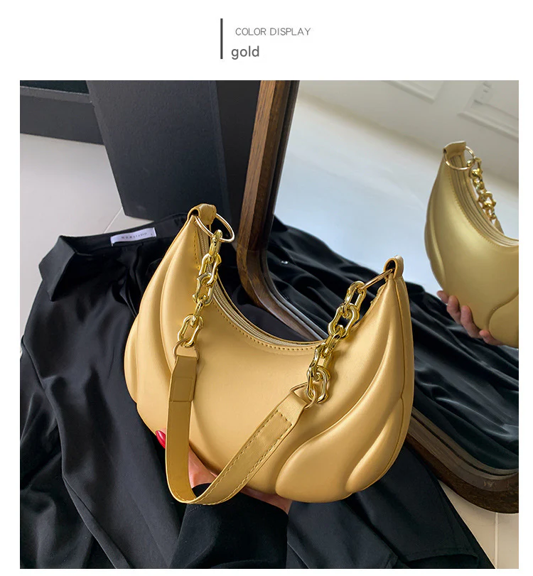 Add a chic twist to your everyday look with this pressed shell armpit bag, designed for the modern woman who values effortless style. With a sleek pillow silhouette, trendy chain detail, and smooth PU texture, this small shoulder bag is the perfect blend of structure and softness. The zipper closure keeps your essentials secure, while the sandwich zipper bag and interior patch pocket offer thoughtful organization.