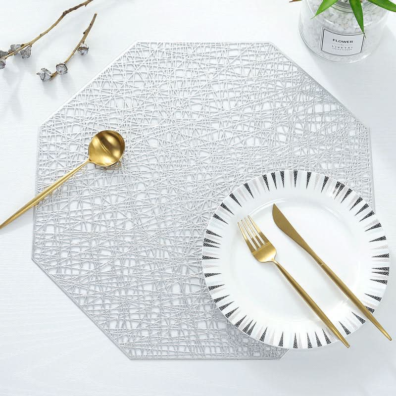 Add style and functionality to your dining table with these European-style PVC placemats. Designed for both aesthetics and practicality, these placemats feature a unique hollow pattern that elevates your dining experience. Made from durable, heat-resistant PVC, they protect your table from hot dishes, spills, and stains, ensuring a clean, safe surface. Ideal for home, hotel, or restaurant use, these placemats are easy to clean and washable for everyday convenience. Their simple yet modern design complements any table setting, making them perfect for casual meals or formal events. Whether you're hosting guests or enjoying a meal with family, these placemats provide excellent insulation and anti-scalding protection. Upgrade your dining experience with these stylish, easy-care placemats that combine function with European elegance.