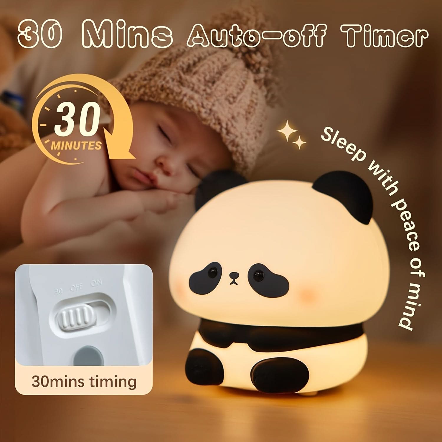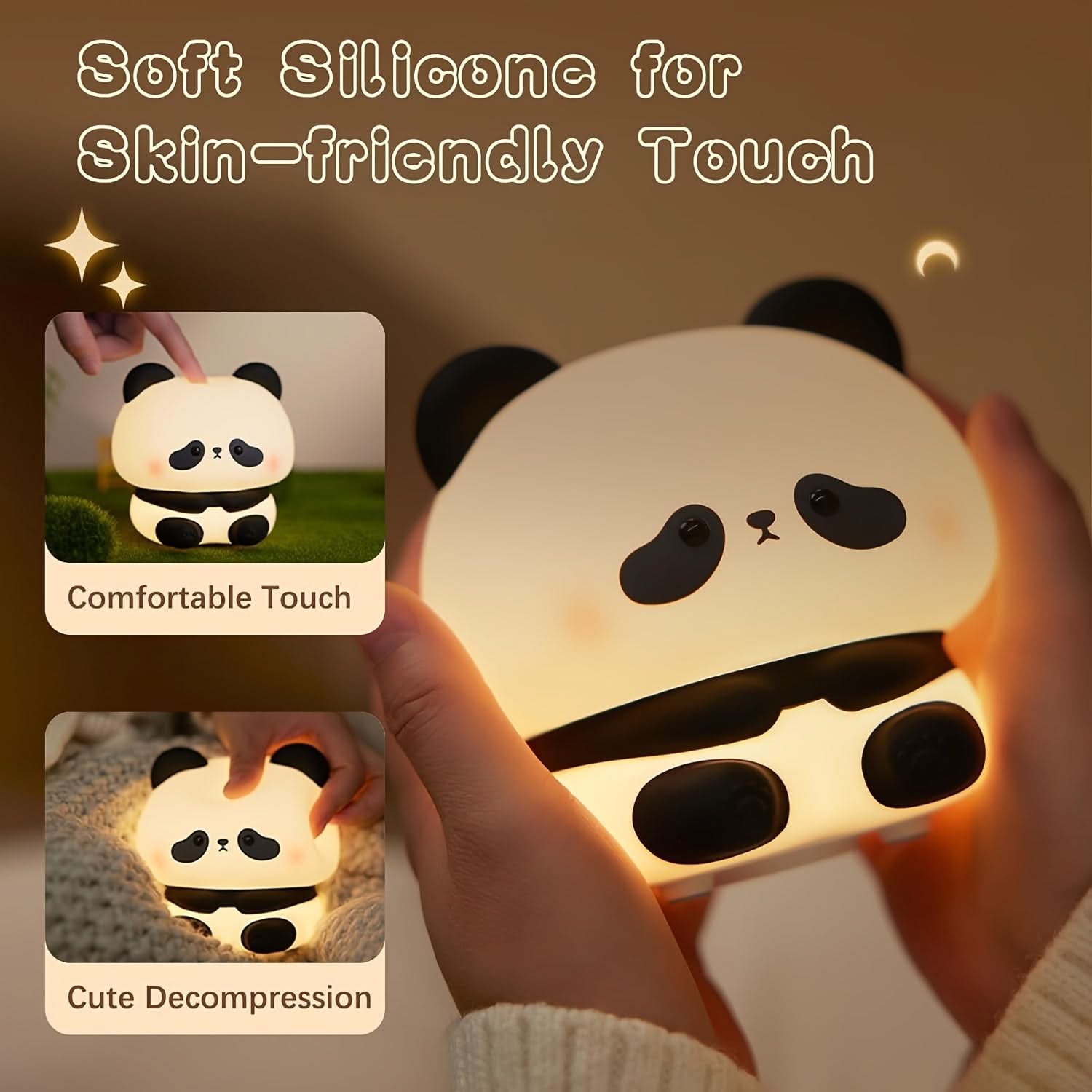Create a calming ambiance in your child’s room with this adorable LED Panda Night Light by DOODBI. Made from soft silicone polymer, this charming panda lamp provides a comforting, warm glow perfect for bedtime. Featuring three adjustable brightness levels, it’s easy to set the ideal lighting for reading, sleeping, or nighttime diaper changes. This night light is battery-powered and USB rechargeable, making it both portable and convenient for everyday use. With its one-color soft LED light, it offers just the right amount of illumination without disrupting sleep. Ideal for nurseries and kids' bedrooms, this panda night light is a cute and practical decor piece and a thoughtful gift for baby showers, birthdays, and more. Give your little one a friendly nighttime companion with this sweet panda lamp.