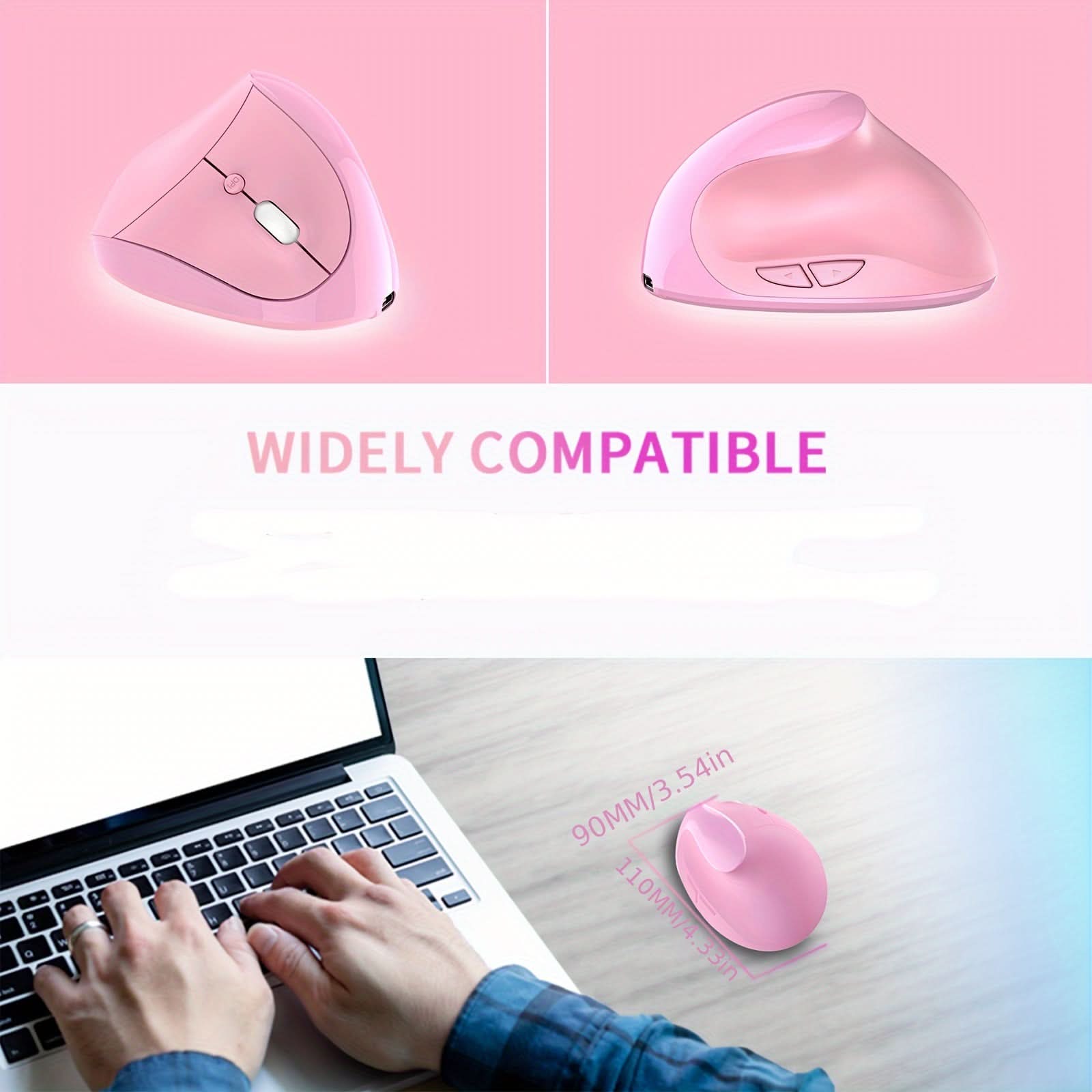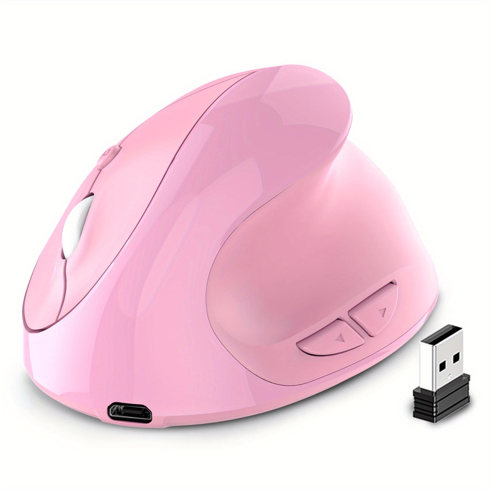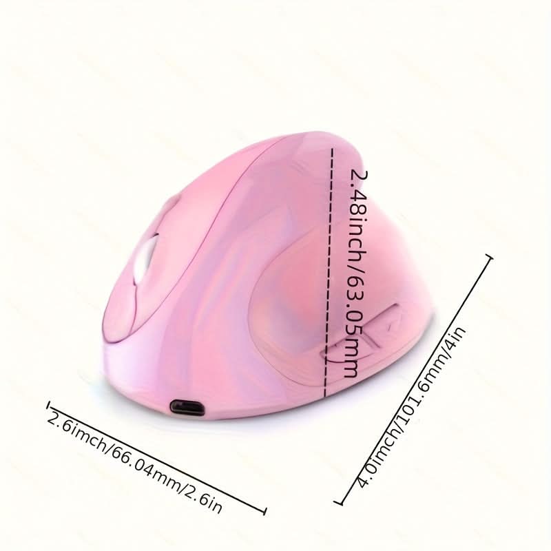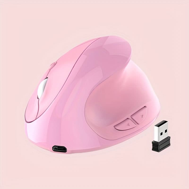 Experience ultimate comfort and precision with this Ergonomic Rechargeable Vertical Wireless Mouse in an elegant pink finish. Designed for right-handed users, this mouse promotes a natural hand posture, reducing wrist strain during extended use. Its dual connectivity via 2.4G wireless and Bluetooth ensures seamless compatibility with laptops, desktops, and tablets.