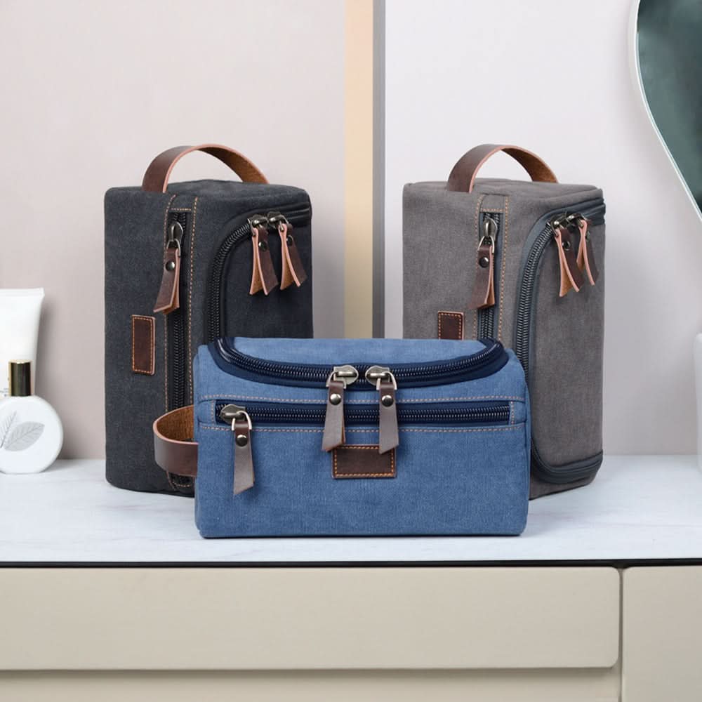 Discover the perfect blend of style and functionality with our Retro Canvas Toiletry Bag. Designed for daily use, this portable cosmetic organizer features a chic European and American retro style that stands out. Made from durable canvas with a solid color pattern, it showcases unique elements like contrast stitching and sewing thread for a high-end look. The ultralight and expandable design makes it easy to store and carry, whether you're heading to the gym or traveling. With a spacious interior lined with soft polyester cotton, this toiletry bag keeps your essentials organized and accessible. Available in dark grey, black, and blue, it’s the ideal companion for anyone seeking a stylish yet practical storage solution. Elevate your daily routine with this must-have toiletry bag!