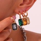 Elevate your jewelry game with these gemstone dangle earrings, a must-have for lovers of timeless elegance with a modern edge. Crafted from durable stainless steel and finished with a brilliant gemstone cut, each piece features a sleek rectangular pendant that catches the light with every move. The secure huggie snap closure ensures a comfortable fit for all-day wear. Perfect for both casual and formal occasions, these earrings bring a bold pop of color and sophistication to any look. Whether you're gifting or treating yourself, they’re a beautiful expression of personal style. Handpicked from Abroad, this design blends retro charm with contemporary detailing—making it a standout piece in any accessory collection.