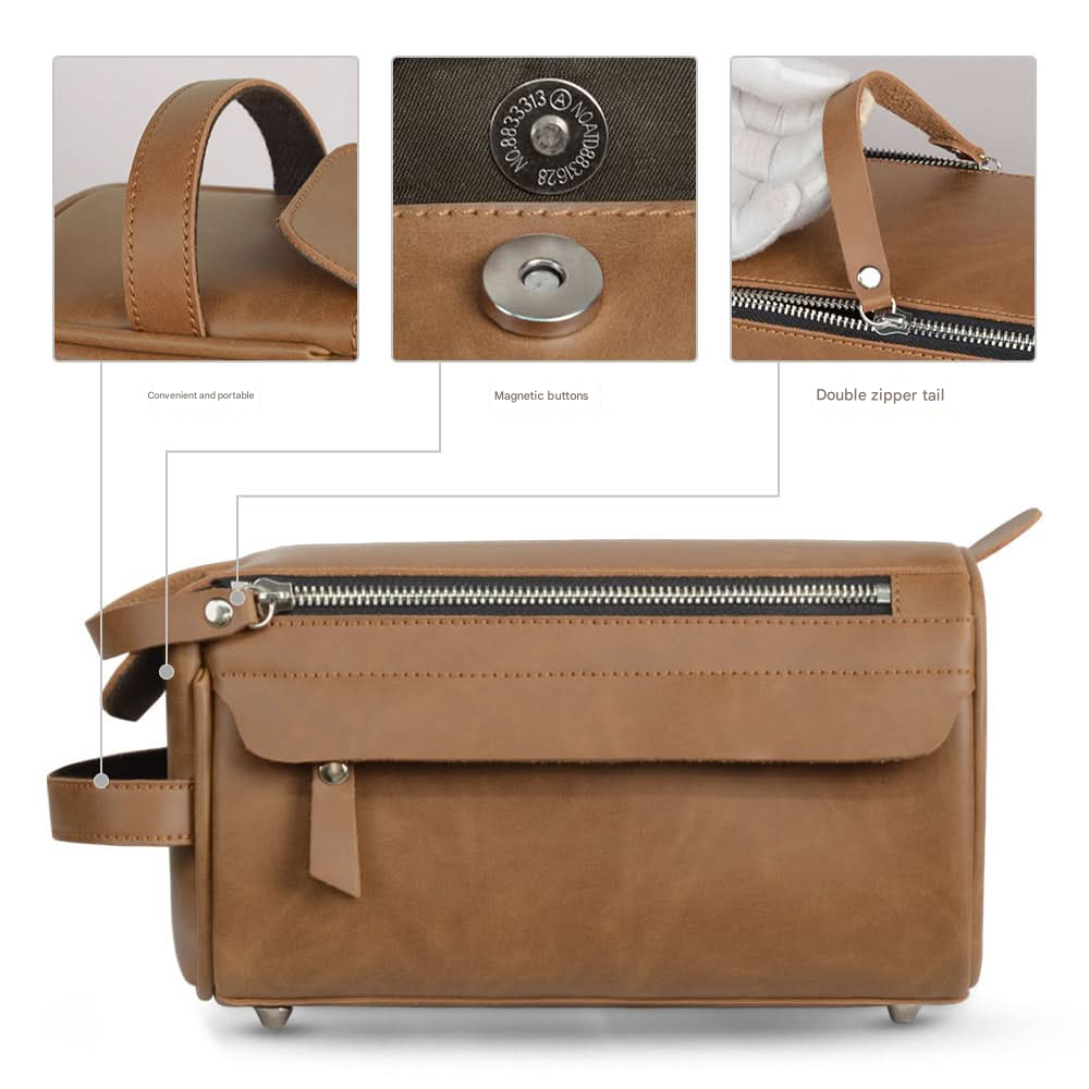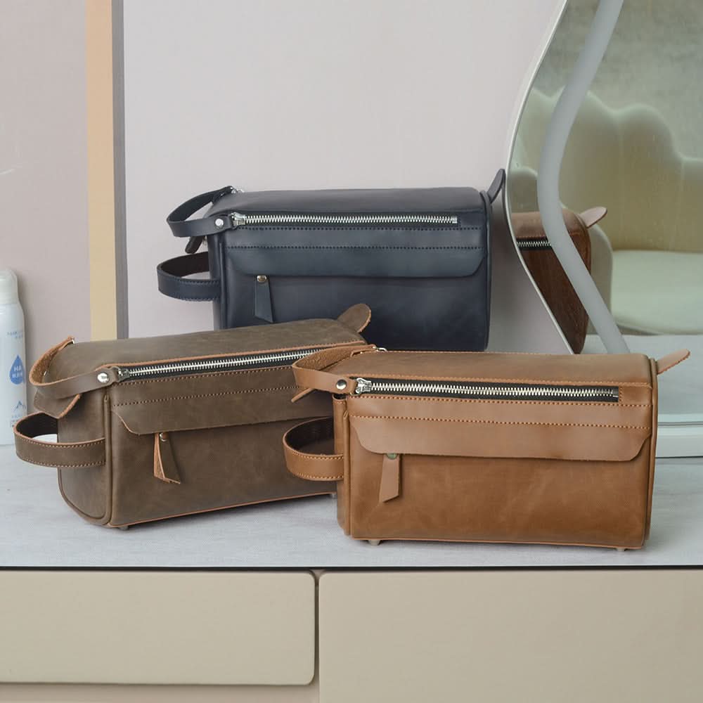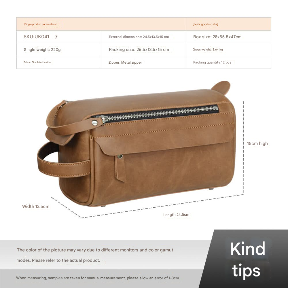 Discover the perfect blend of style and functionality with our Retro Men's PU Leather Wash Bag. Designed for the modern man, this large-capacity clutch organizer is crafted from high-quality imitation leather, offering a sophisticated look with a solid color finish. Available in dark blue, dark brown, and yellow brown, it complements any outfit while keeping your essentials organized. The waterproof lining ensures your toiletries stay safe and dry, making it ideal for daily use or travel. With its European and American retro style and durable sewing thread details, this wash bag is not just practical but also a statement piece. Whether you're heading to the gym, office, or on a weekend getaway, this versatile storage bag is your go-to accessory for effortless organization and timeless elegance.