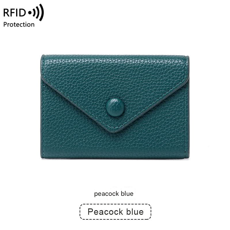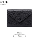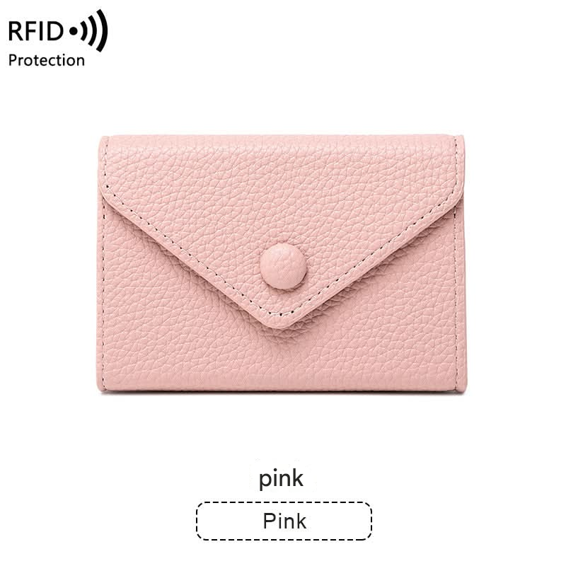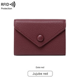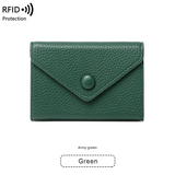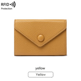 Keep your cards secure and organized with this RFID-blocking PU leather card holder. Designed for both men and women, this lightweight accordion-style wallet features a sleek solid color lychee pattern, giving it a modern yet sophisticated look. Crafted from soft PU leather with a durable polyester lining, it offers multiple card slots to keep your essentials neatly arranged. The RFID-blocking technology protects your cards from unauthorized scanning, adding an extra layer of security. Its compact, two-fold design makes it easy to carry in your pocket or bag, while the detailed sewing thread accents enhance its stylish appeal. Available in a variety of colors, including black, red, peacock blue, khaki, pink, brown, military green, and yellow, this versatile wallet is perfect for daily use or travel.